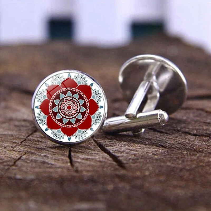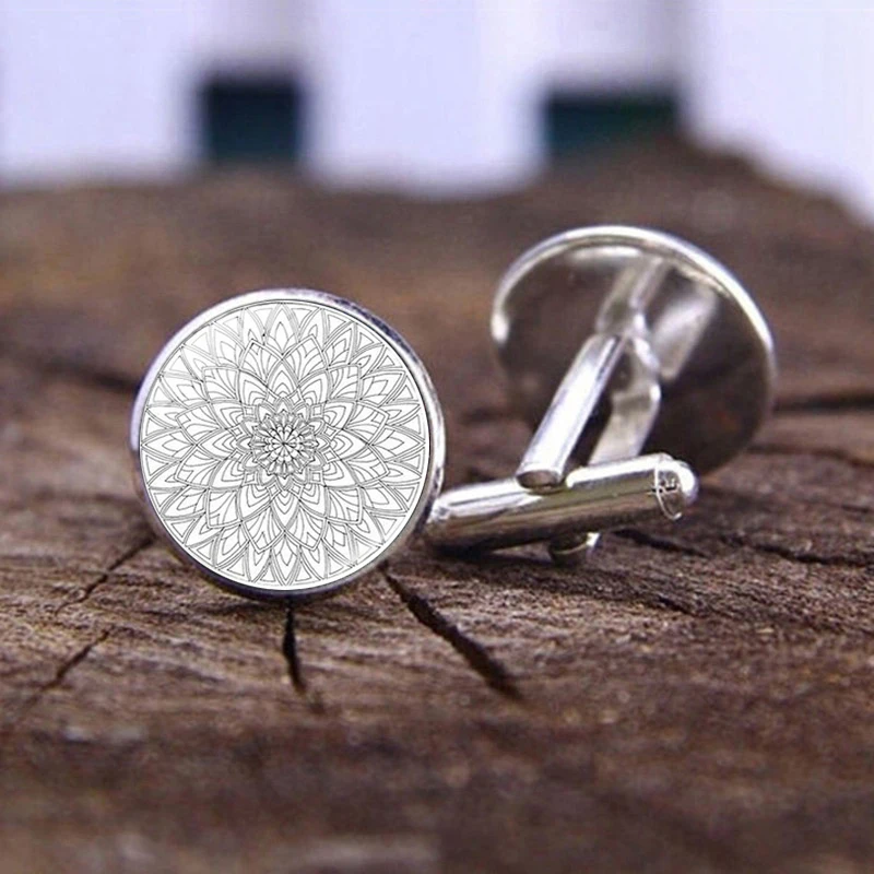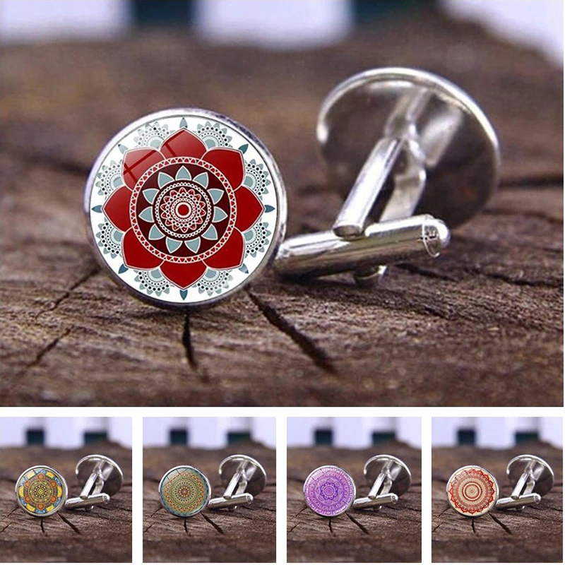 Запонки мужские с мандалой и цветами, классические ювелирные украшения в виде священных геометрических фигур Budddhist, запонки для костюма, рубашки, аксессуары для мужчин, подарок на день рождения