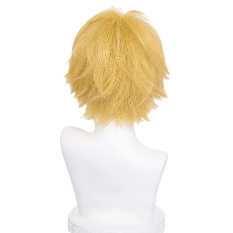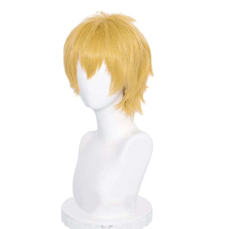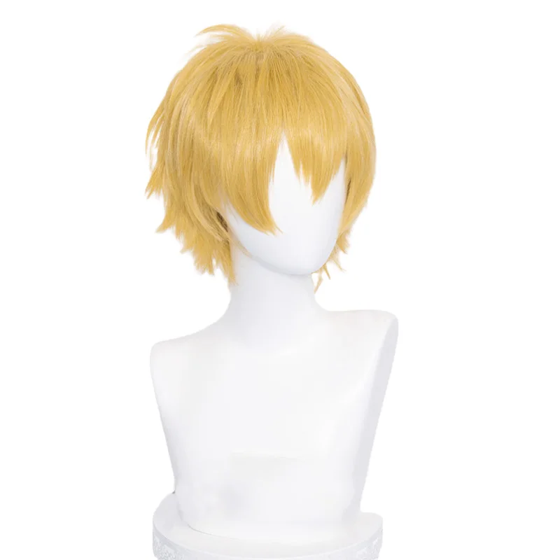 Парик для косплея денджи из мф бензопила, термостойкий синтетический, с коротким желтым амином для косплея, Хэллоуина, 30 см