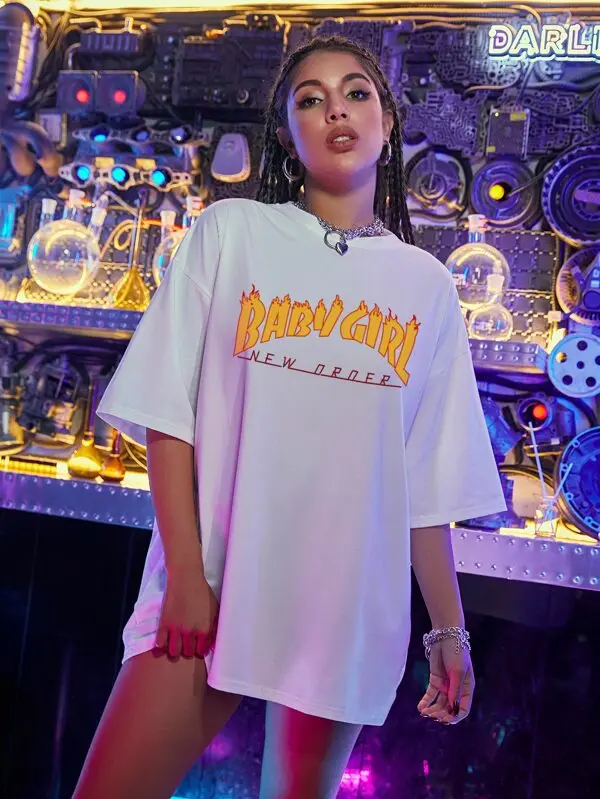 Футболка женская оверсайз с коротким рукавом и принтом в готическом...
