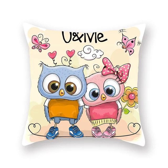 Мультяшная наволочка для подушки, чехол для подушки с милой совой, полиэстер, декоративная наволочка, диванная подушка, квадратная Подушка 45*45 см
