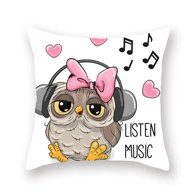 Наволочка для диванной подушки, из полиэстера, с рисунком совы, 45 х45