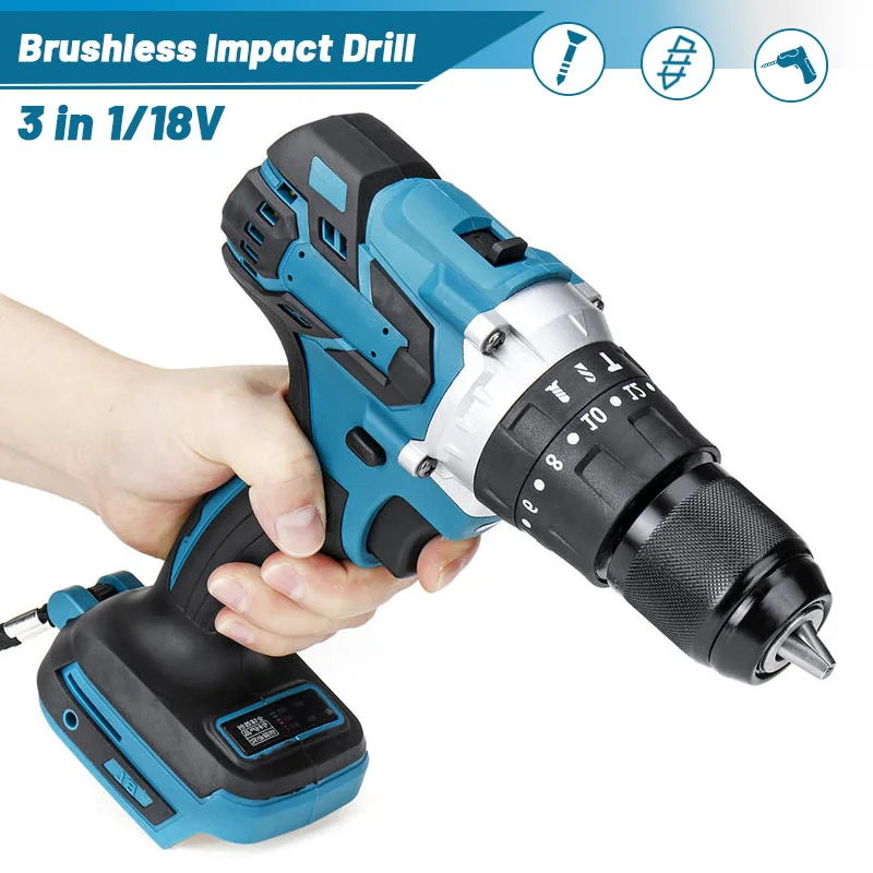 Дрель-шуруповерт ударная Беспроводная 3 в 1, 13 мм, 20 + 3 крутящих момента, 18 в
