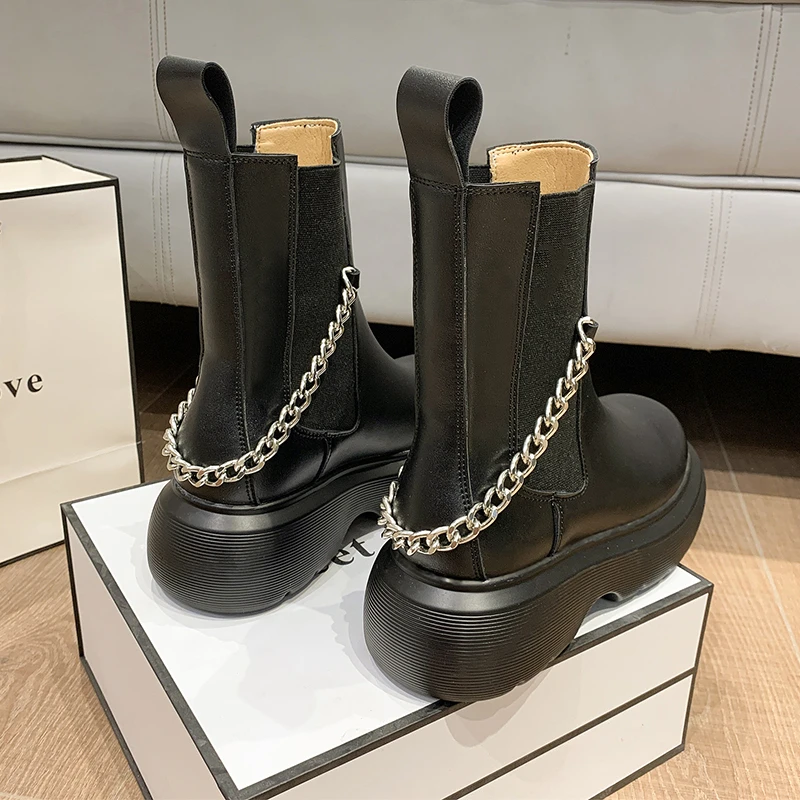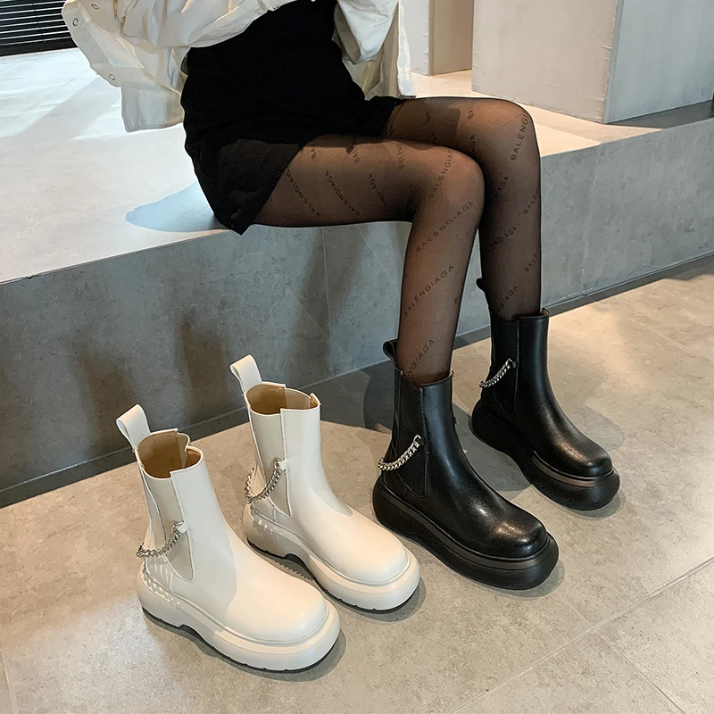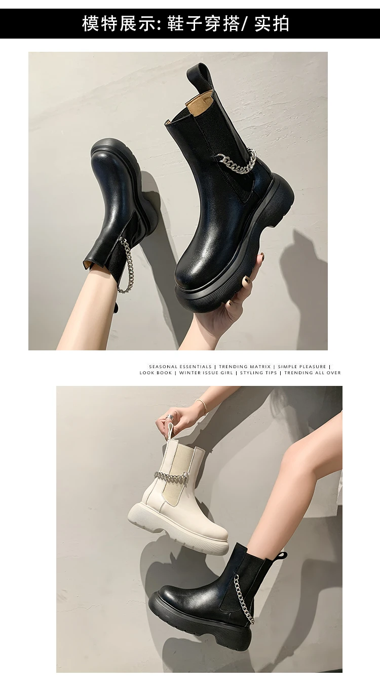 Женские ботинки, Новинка весна-осень 2021, ботинки челси на толстой подошве, ботинки средней длины на плоской подошве, женские боевые ботинки для женщин