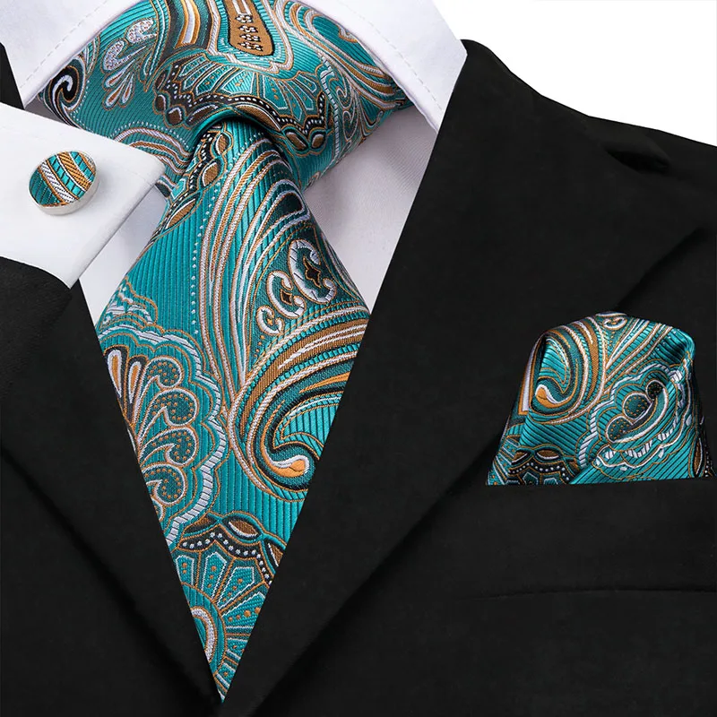 Hi-Tie Зеленый бирюзовый галстук однотонный Пейсли Мужской Шелковый Свадебный галстук Карманный квадратный набор для вечеринки Бизнес Модный дизайнерский дропшиппинг