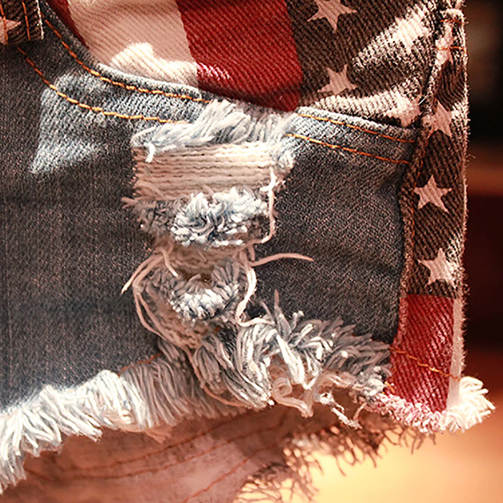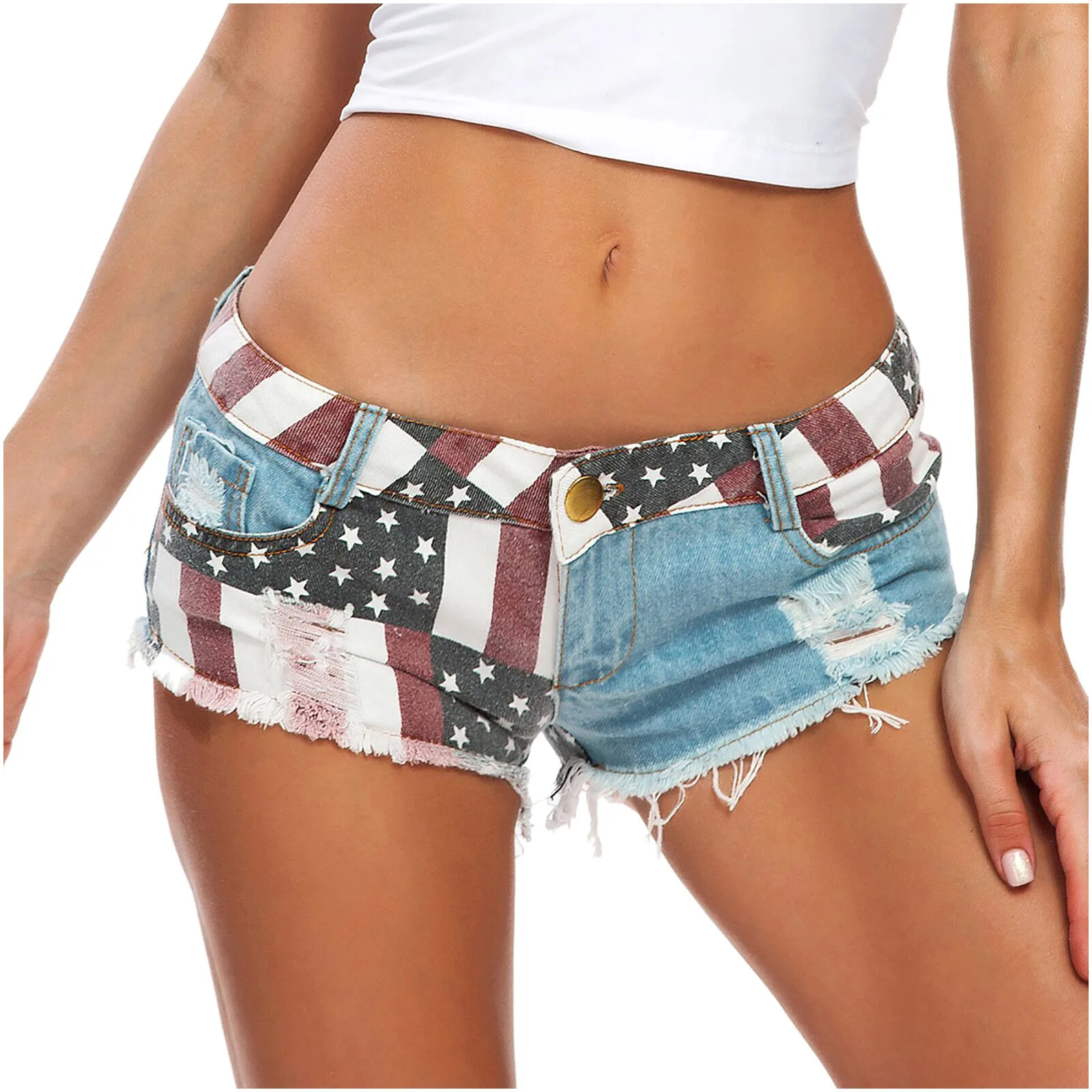 Облегающие шорты на День Независимости, Женские повседневные летние шорты с карманами, модные пикантные джинсовые шорты с кисточками, с американским флагом