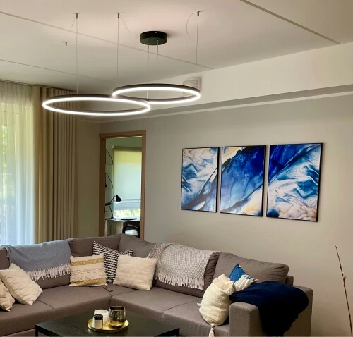60 см 80 см 100 см современные подвесные светильники для гостиной столовой круглые кольца акриловый алюминиевый корпус светодиодный потолочный светильник светильники