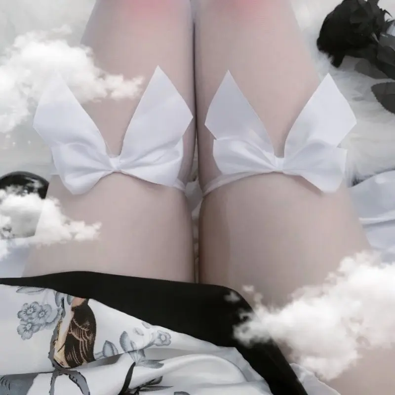 Номер моделиry Thin Bow Stay Up Thigh High Silk Stockings