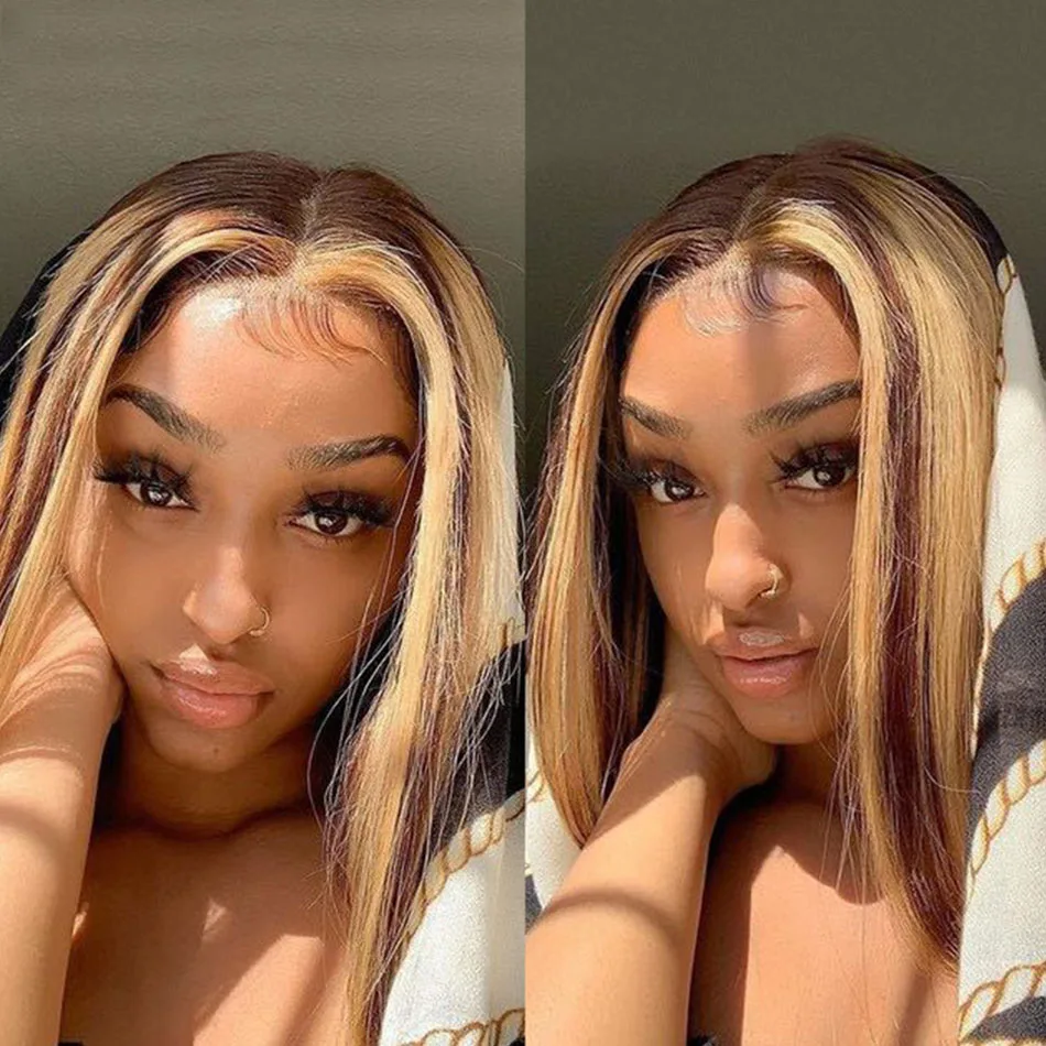 Парик из натуральных волос, прямой, 4X4, с эффектом омбре, прозрачный парик из натуральных волос для женщин
