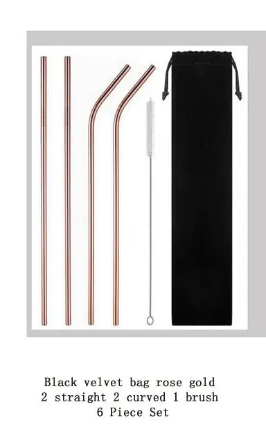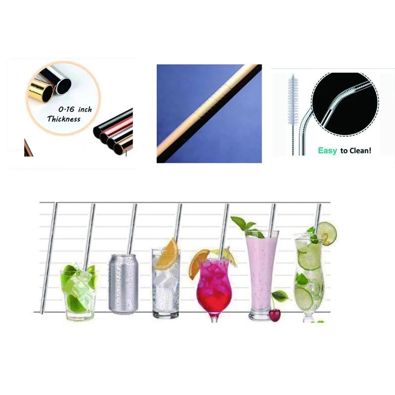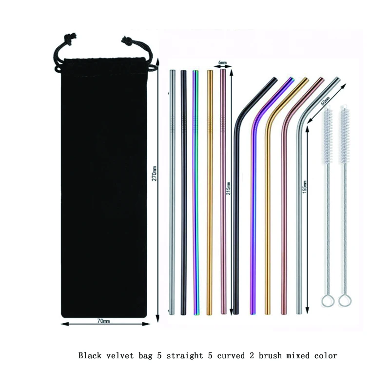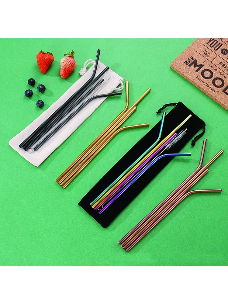 Перерабатываемая металлическая трубка, изготовленная из нержавеющей стали 304, с прямым локоть, с набором кистей, для вечерние, портативный набор соломы