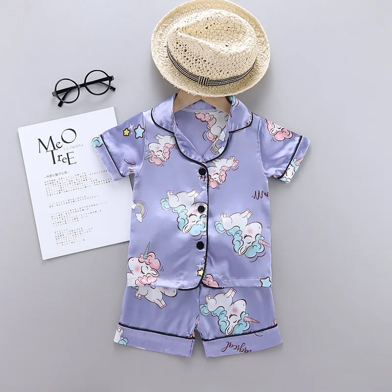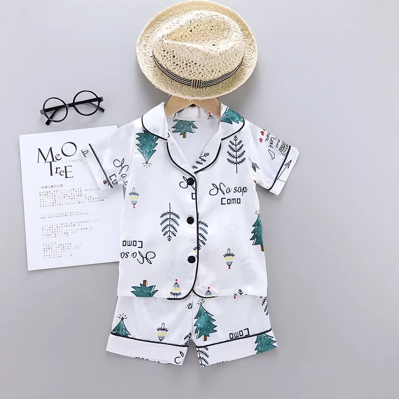 Детский пижамный комплект, шелковая атласная пижама для мальчиков и...