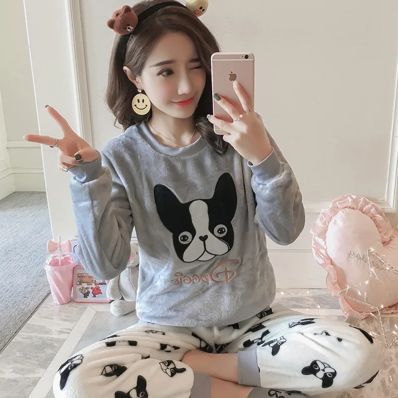 Осень-зима 2021, фланелевый плотный пижамный комплект из 2 предметов, повседневный свободный костюм с круглым вырезом, теплая удобная одежда для сна, ночная рубашка, пижамы
