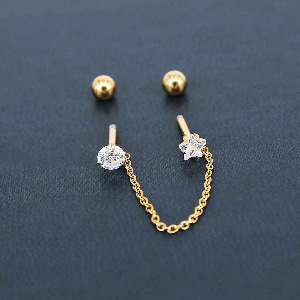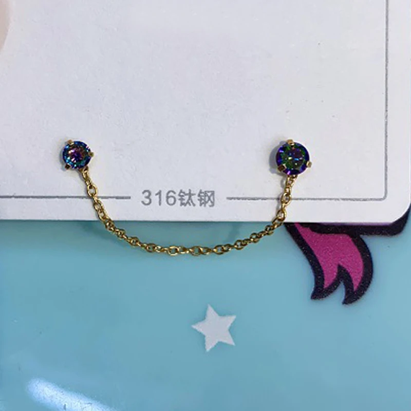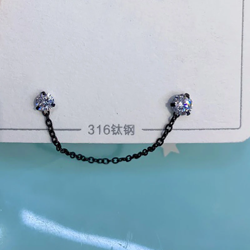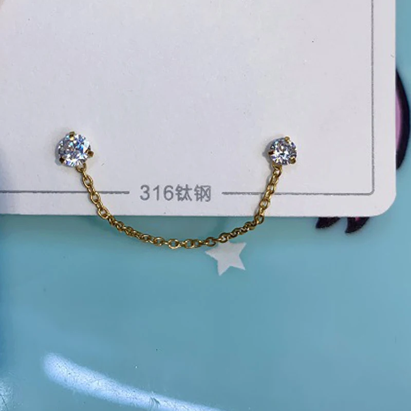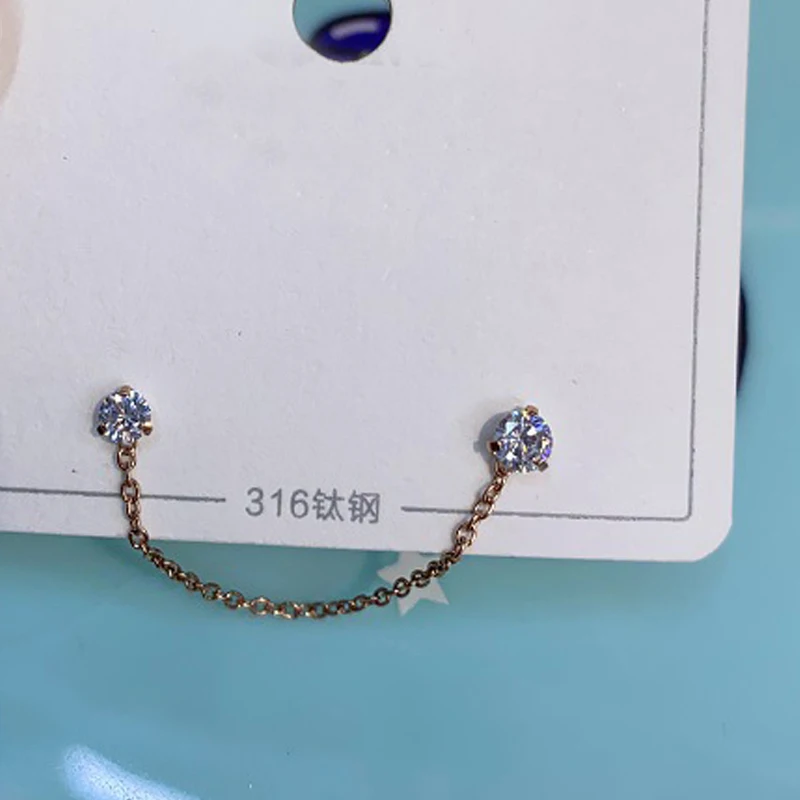 Серьги-гвоздики из хирургической стали, с цирконом, неаллергенные, на цепочке, украшения для тела, пирсинг, модные украшения, 1 шт.