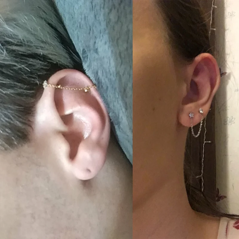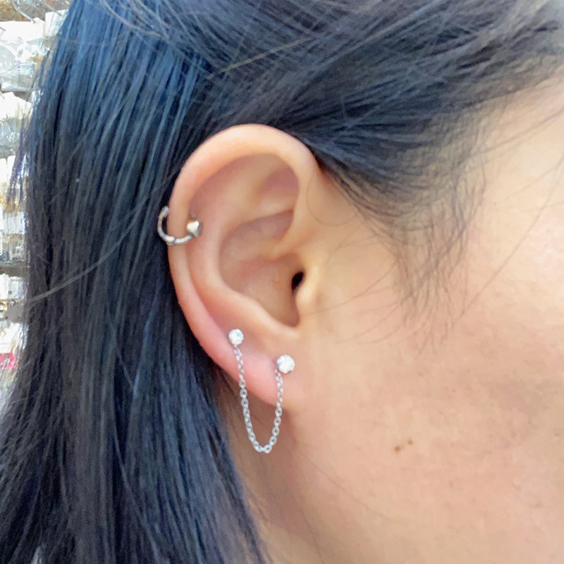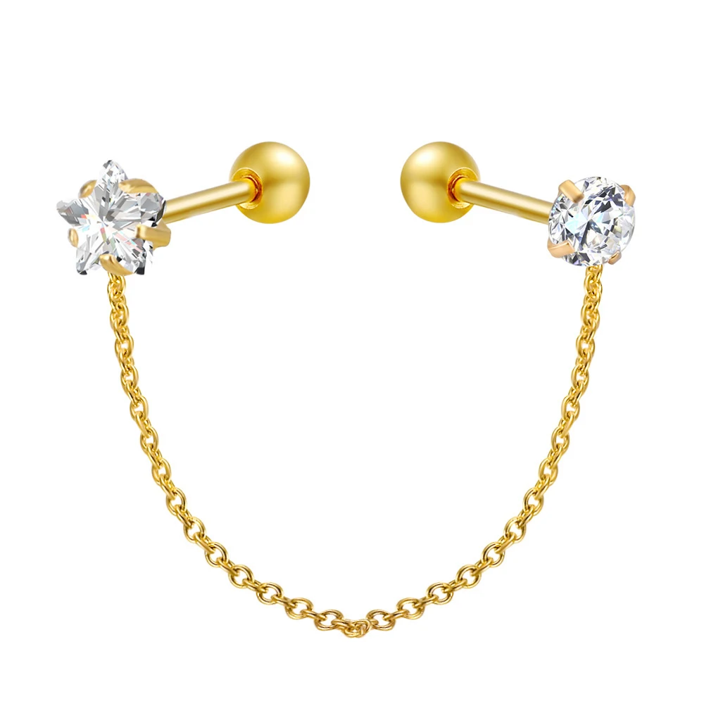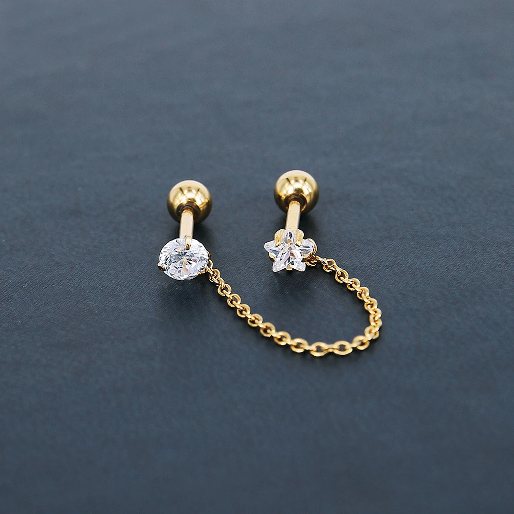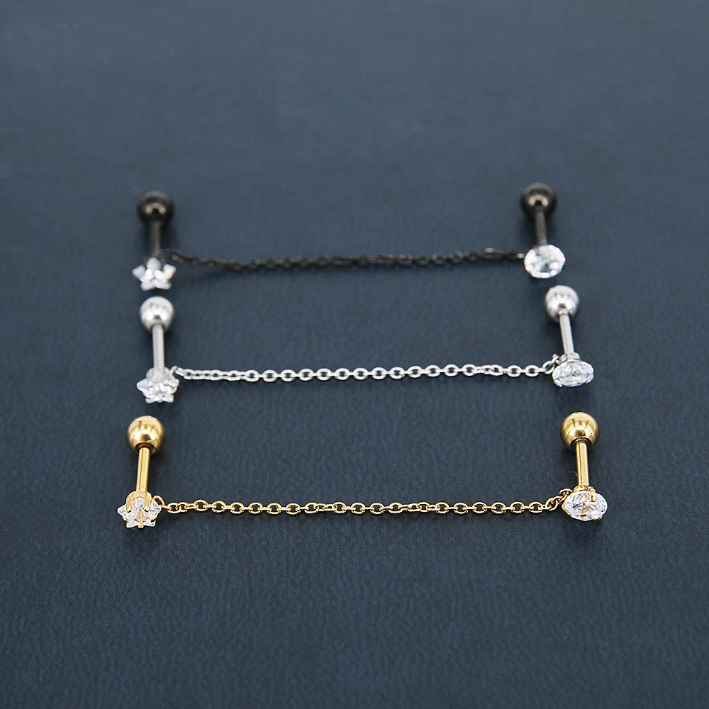 Серьги-гвоздики из хирургической стали, с цирконом, неаллергенные, на цепочке, украшения для тела, пирсинг, модные украшения, 1 шт.