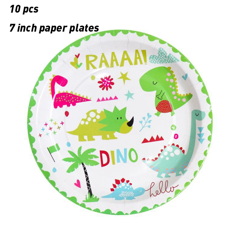 Зеленые динозавры, искусственные украшения, наборы одноразовой посуды, Необычные тарелки для детского праздника