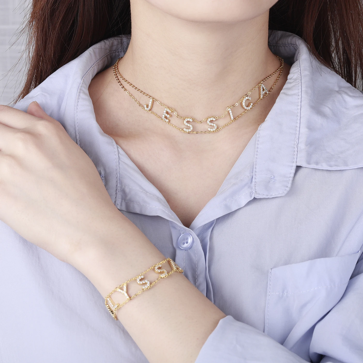 Ожерелье из циркония с именем на заказ, ожерелья с именем из бриллианта, подвеска из нержавеющей стали, Аксессуары для женских подарков