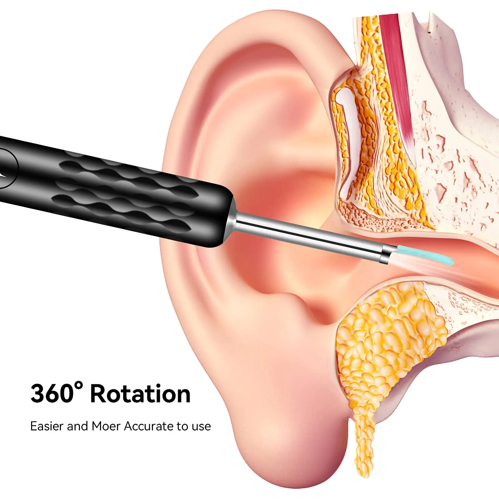 1080P камера высокой четкости и 6 светодиодный: устройство для удаления воска с камерой использует технологию камеры высокой четкости 300 Вт пикселей, которая является водонепроницаемой, пыленепроницаемой и противотуманной. Ушная ложка для воска с светильник имеет 6 сильный светодиодный белый светильник s и 360 градусов Профессиональный широкоугольный объектив, увидеть каждую деталь ушного канала в реальном времени и удалить ушной воск точно и безопасно.