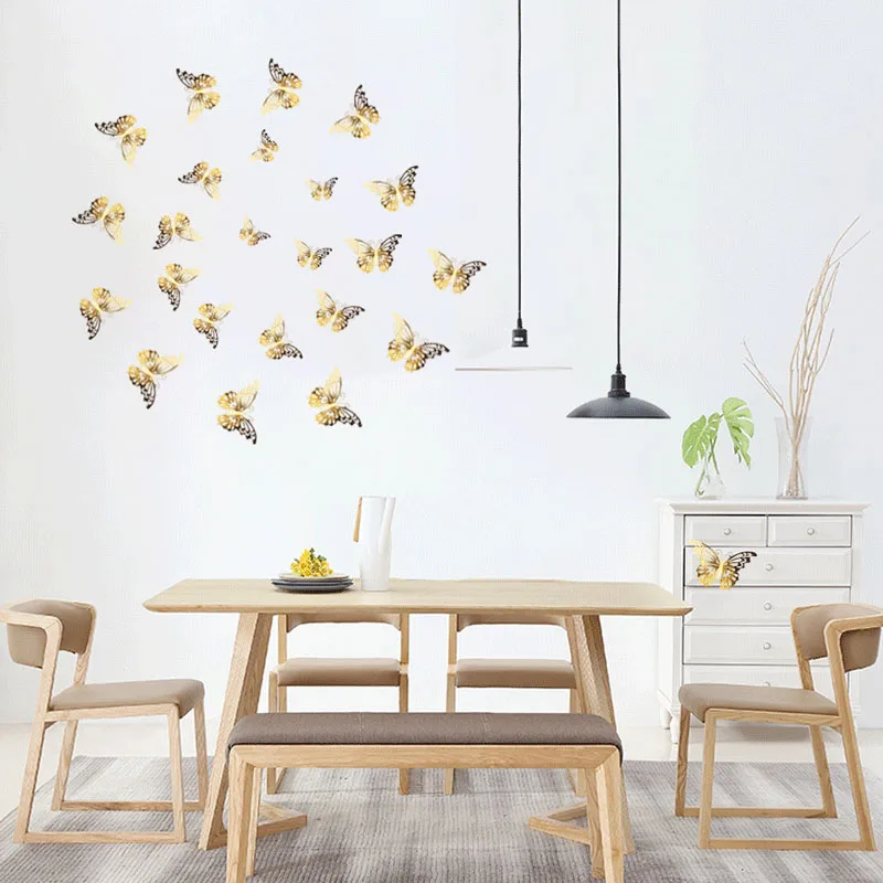 12 шт.компл. 3D полый стикер на стену с бабочками Золотая Серебряна...
