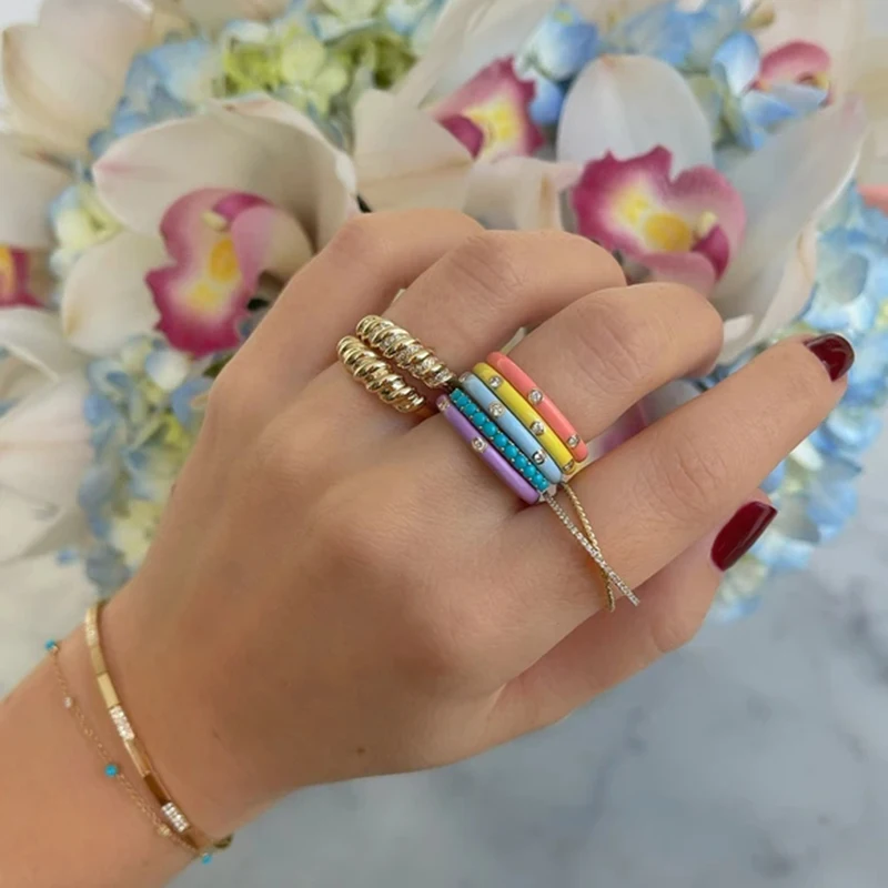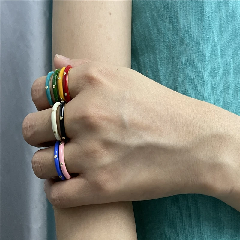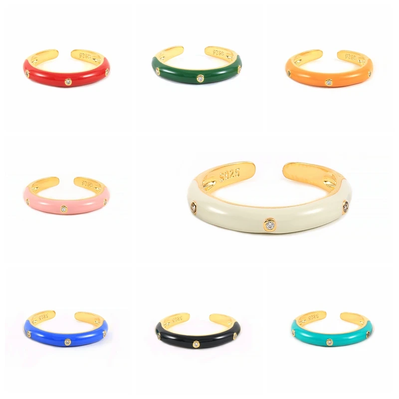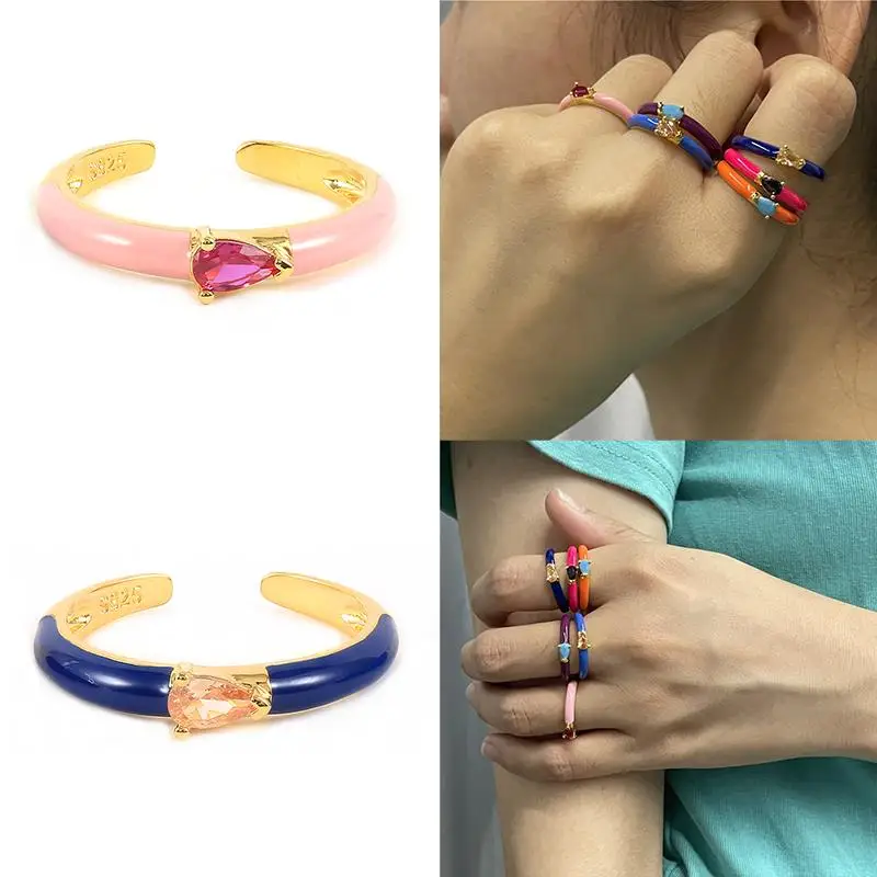 Регулируемое эмалированное женское кольцо MC, открытое серебряное кольцо на палец, новые кольца конфетных цветов с красочным цирконием