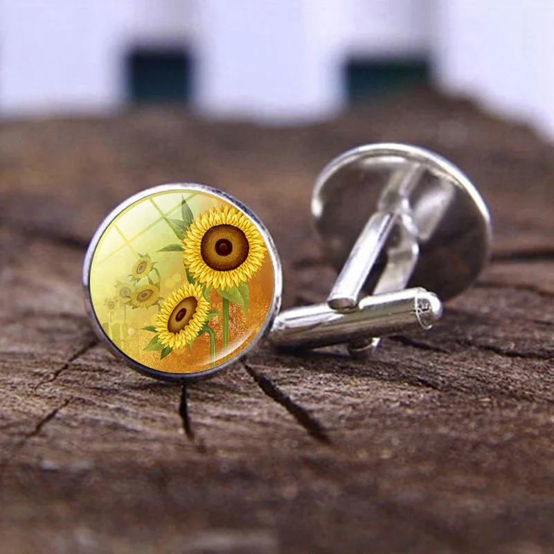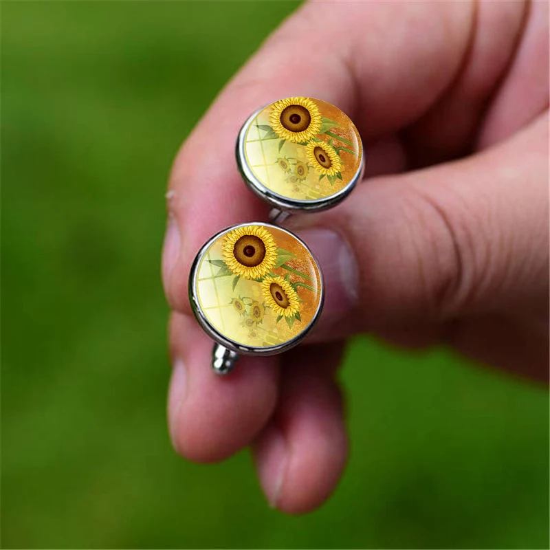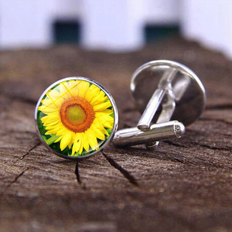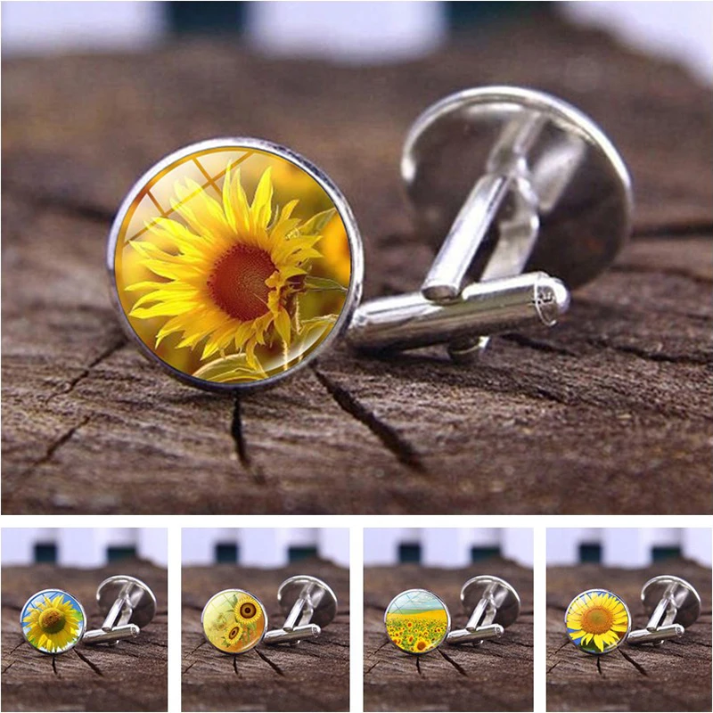 Подсолнух стекло мужские запонки для рубашек Высокое качество Модный костюм рубашка Запонки мужские ювелирные аксессуары подарок на день рождения