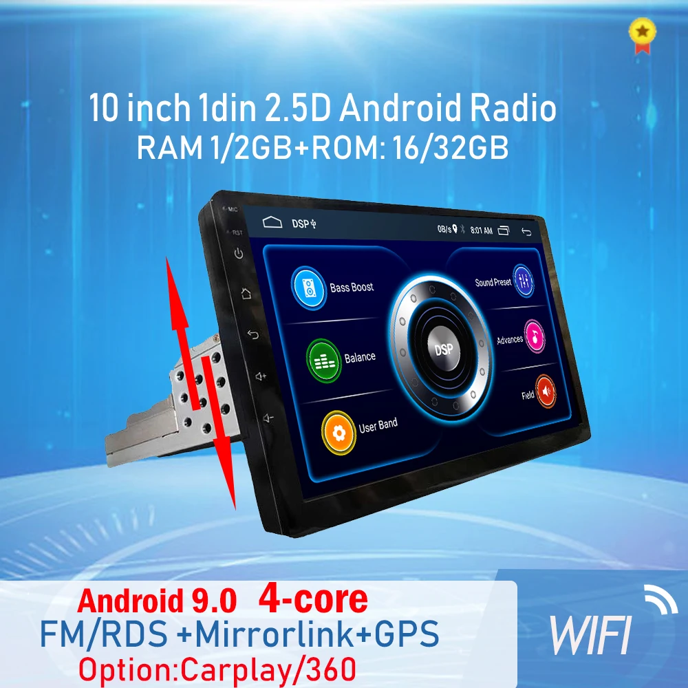 Автомобильная Мультимедийная система, мультимедийный плеер на Android 9,1, с 10 "экраном, GPS, 2 Гб ОЗУ, 32 Гб ПЗУ, для Volkswagen, Nissan, Kia, Toyota, Skoda, Типоразмер 1DIN