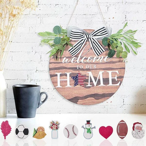 Навесной венок со сменными дверями и надписью Добро пожаловать, 30 х0 см, фотоукрашение, рождественские подарки, подвесной знак, украшение для дома