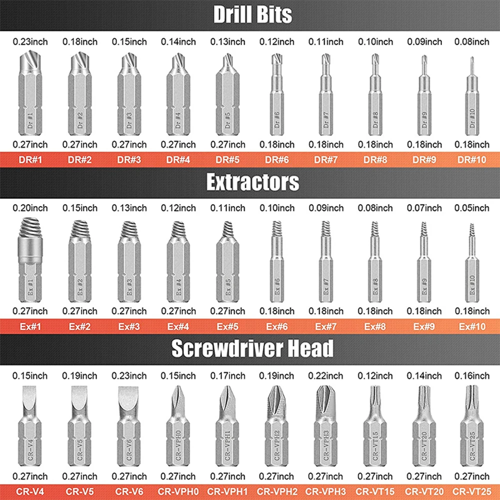 Широко используется: подходит для наиболее распространенных сверл и винтов или болтов различных размеров, таких как шестигранные болты, винты машины, болты с квадратной головкой, деревянные винты, шестигранные болты, винты из листового металла.