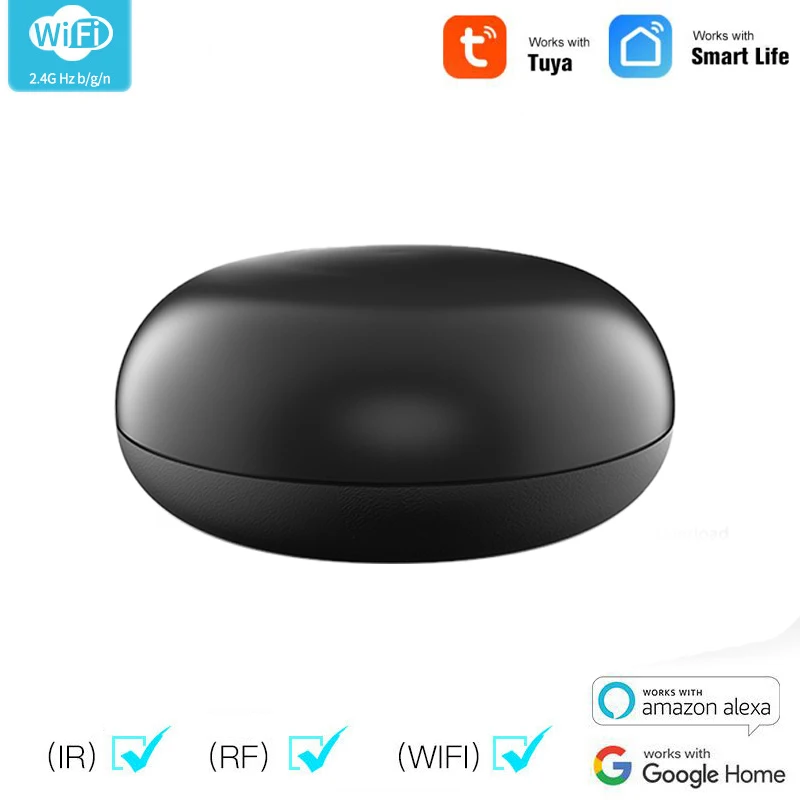 Основные функции: дистанционное управление через мобильный телефон App, голосовое управление через Alexa и Google Home, поддержка всех бытовых приборов, которые используют инфракрасный сигнал