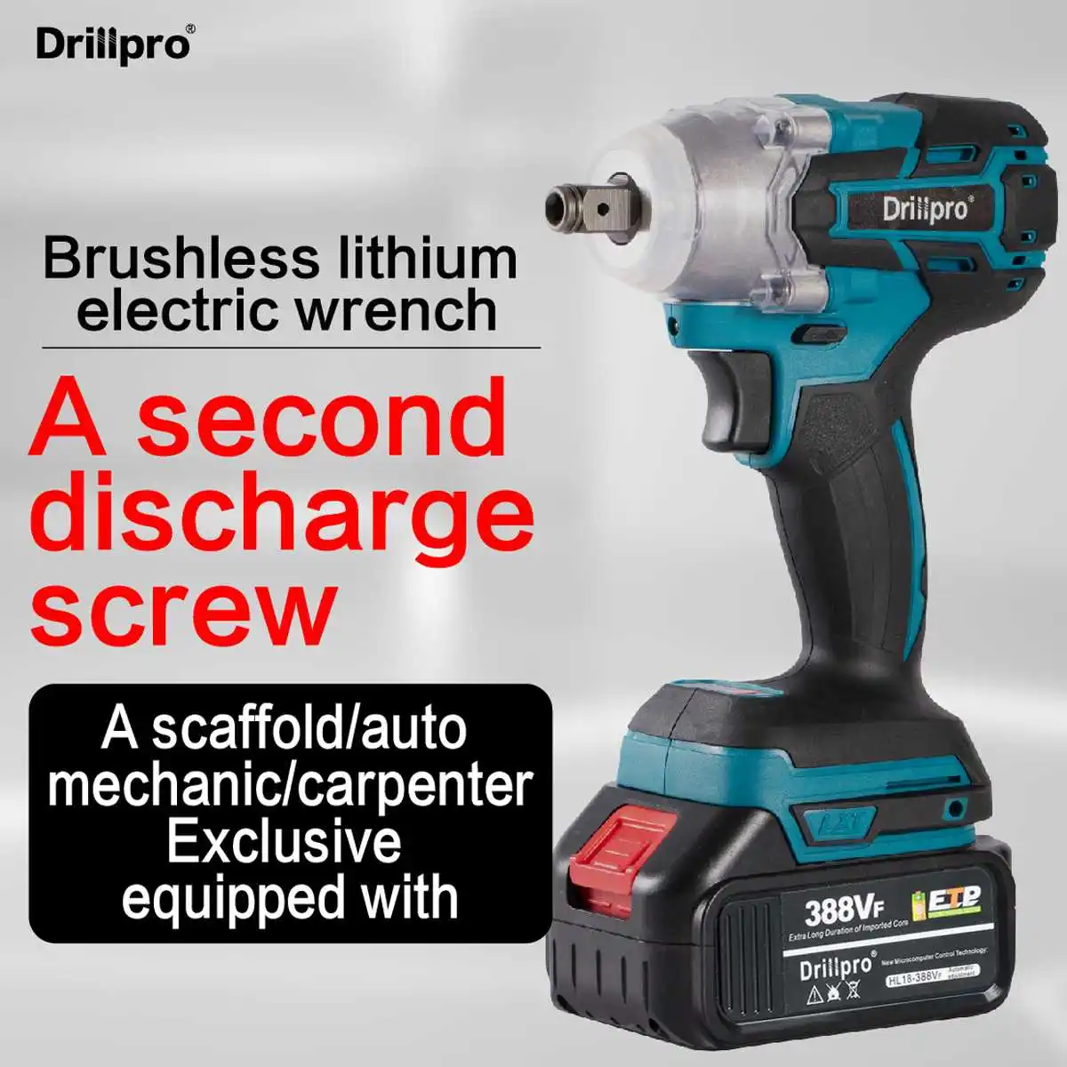 Гайковерт ударный Drillpro 388VF аккумуляторный, 12 дюйма, 15000Amh