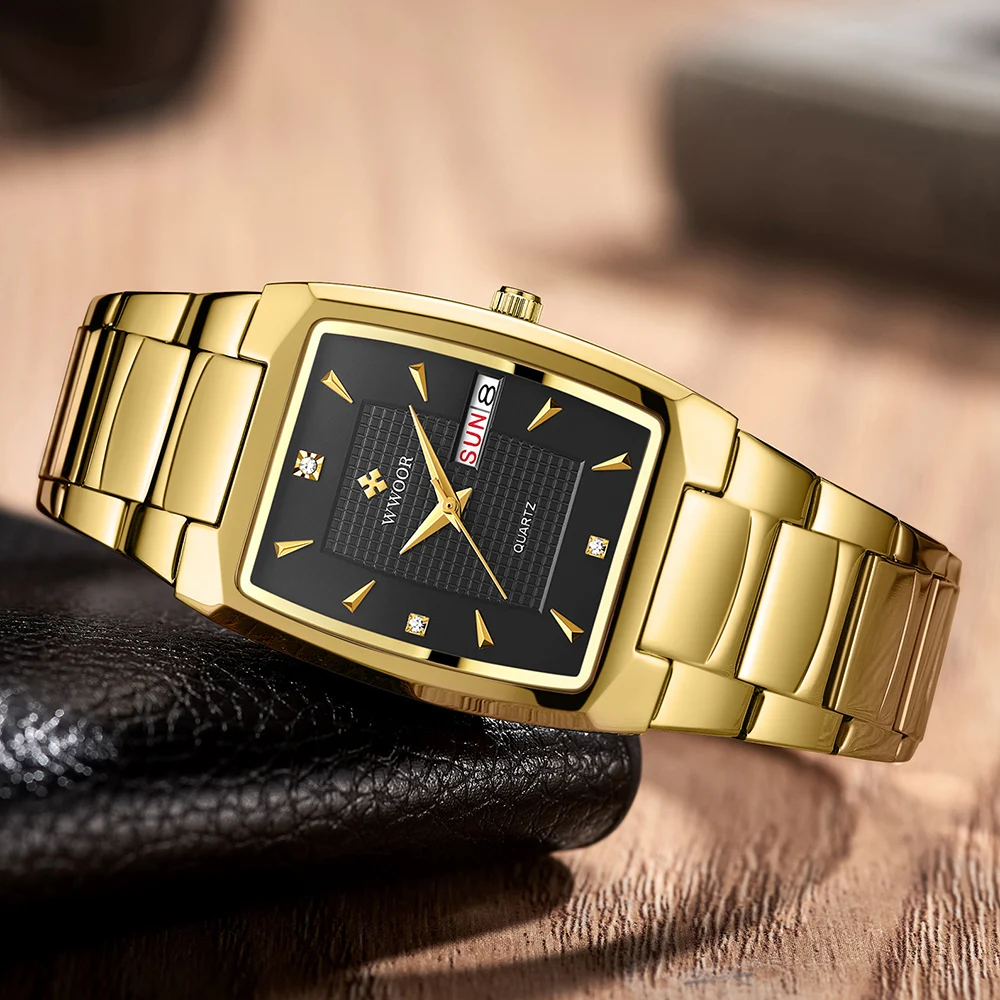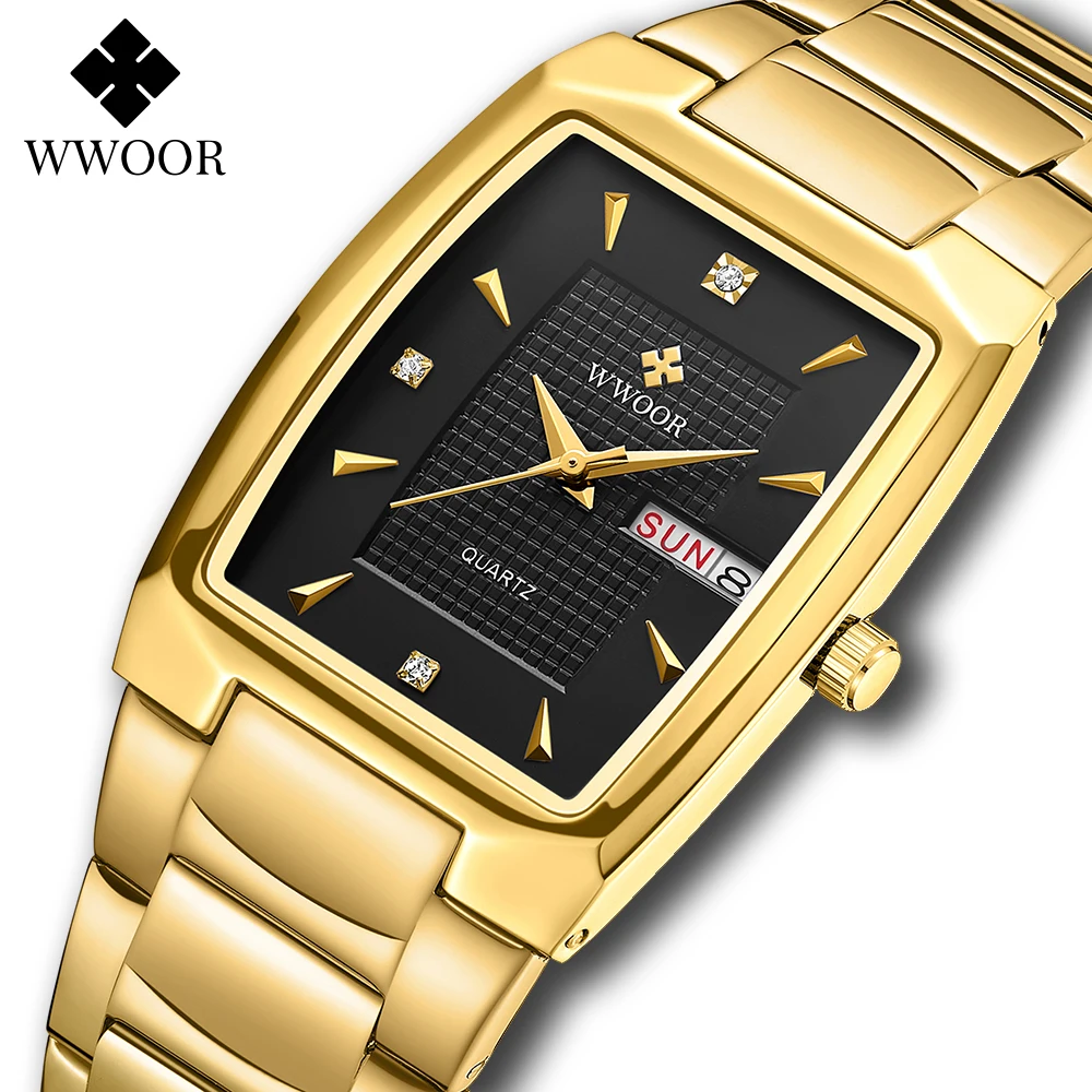WWOOR новые мужские часы 2021 роскошные золотые черные квадратные кварцевые часы мужские Браслет Водонепроницаемый неделя Дата наручные часы Relogio Masculino