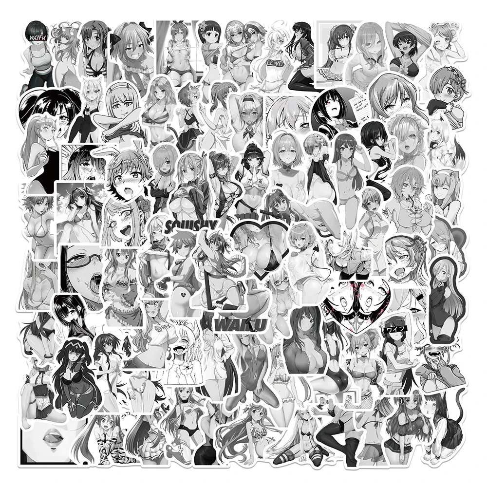 103050100 шт. смешанные аниме черно-белые наклейки Hentai сексуальная девушка кролик вайфу DIY СКЕЙТБОРД гитара Смешные Мультяшные наклейки подарок