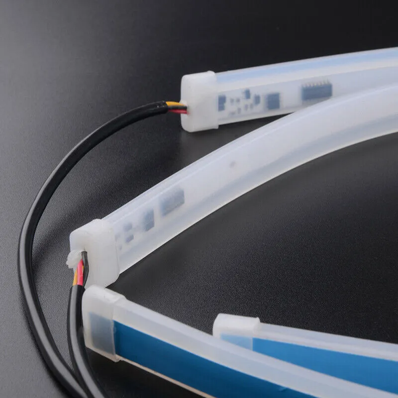Детали товара:* 100% новый и высокое качество.* Водонепроницаемый и простой в установке.* Размер установки меньше, чем обычный светильник, и не будет никаких проблем, которые не могут быть подключены и отключены.* Хлопковый светильник, с использованием 3014 ламповых бусин, 60 см светильник-бар содержит 120 ламповых бусин, Ламповые бусины расположены плотно, что может излучать более мягкий и равномерный светильник.* Эксклюзивная технология FlexBeam: силиконовая трубка OEM класса (специально разработана для предотвращения термического повреждения фар, в противном случае это может привести к желтому или тресканию других материалов, не входящих в OEM).* Гибкое использование, гибкая и прочная пластичность.* Внутренняя или внешняя установка: класс водонепроницаемости IP67 для обеспечения того, чтобы ваш автомобиль был дождь или освещен.* Применение: он также может использоваться в качестве фар, задних фонарей, тормозных огней, противотуманных фар или освещения под бампером, что делает его ярким внешним видом европейских светодиодный дневных ходовых огней/ходовых огней (DRL), например, новейший светодиодный фонарь (A4, A5, S5, A6, Q5, Q7, R8) для Mercedes-Benz или Porsche.Характеристики:* Тип: дневные ходовые огни* Длина: прибл. 60 см* Светильник Цвет: красный (ДХО) + желтый (поворотный светильник)* Рабочее напряжение: 12 В постоянного тока* Диаметр трубки: около 1/2 дюйма в диаметре.* Толщина: прибл. 3 мм* Ширина: прибл. 15 смПрименимые модели:Черная линия = отрицательный полюсКрасная линия = положительный полюсЖелтая линия = автомобильный сигнал поворотаПосылка:2 * гибкие трубки DRL огни