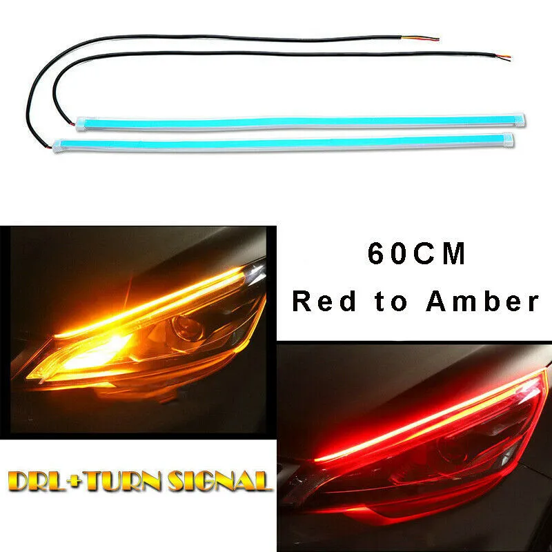 Гибкие трубчатые дневные ходовые огни, 2 шт., s 60 см, мягкие светодиодсветодиодный дневные ходовые огни, цвет красный, янтарный, s