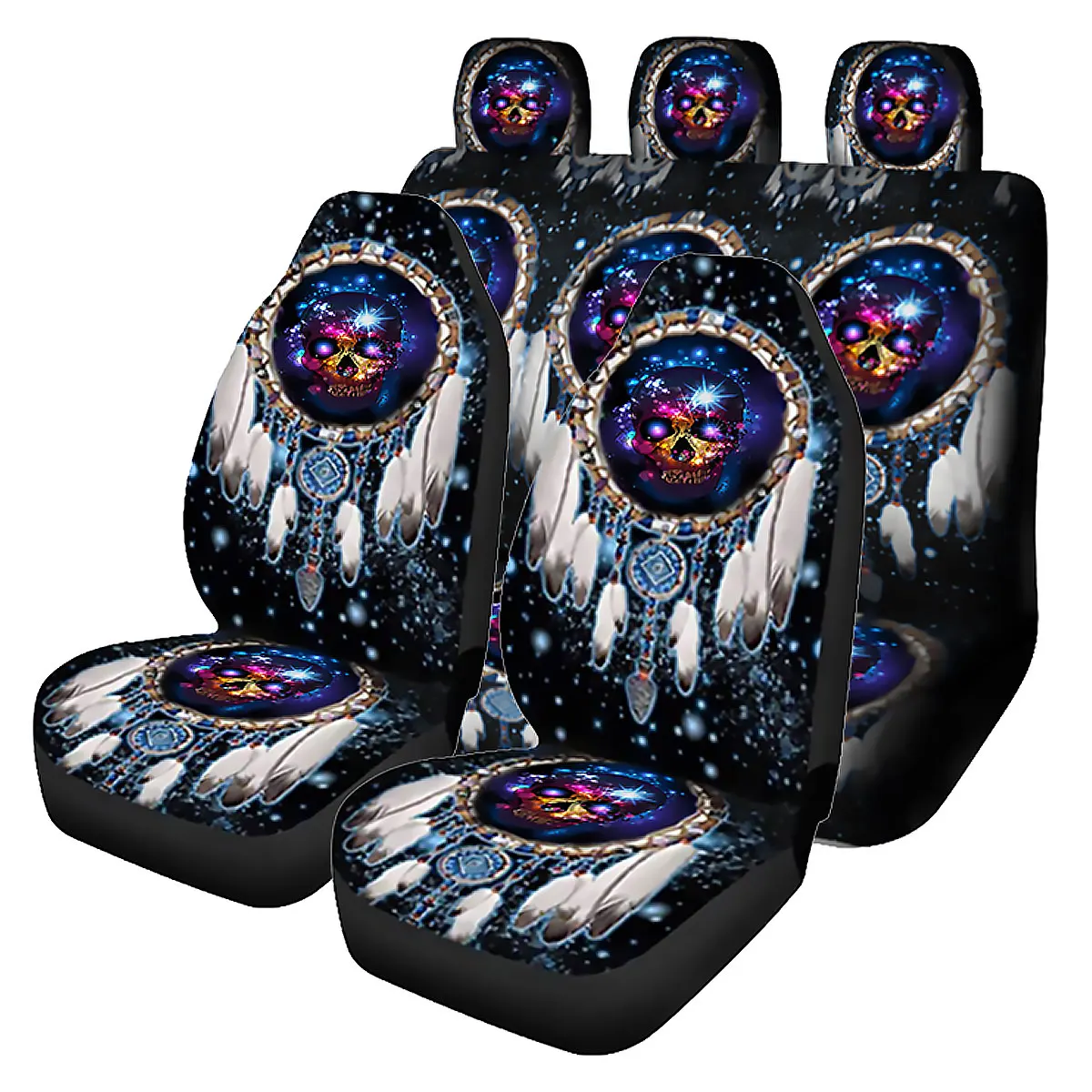 7 шт.комплект, чехол на переднее сиденье автомобиля с принтом черепа волка