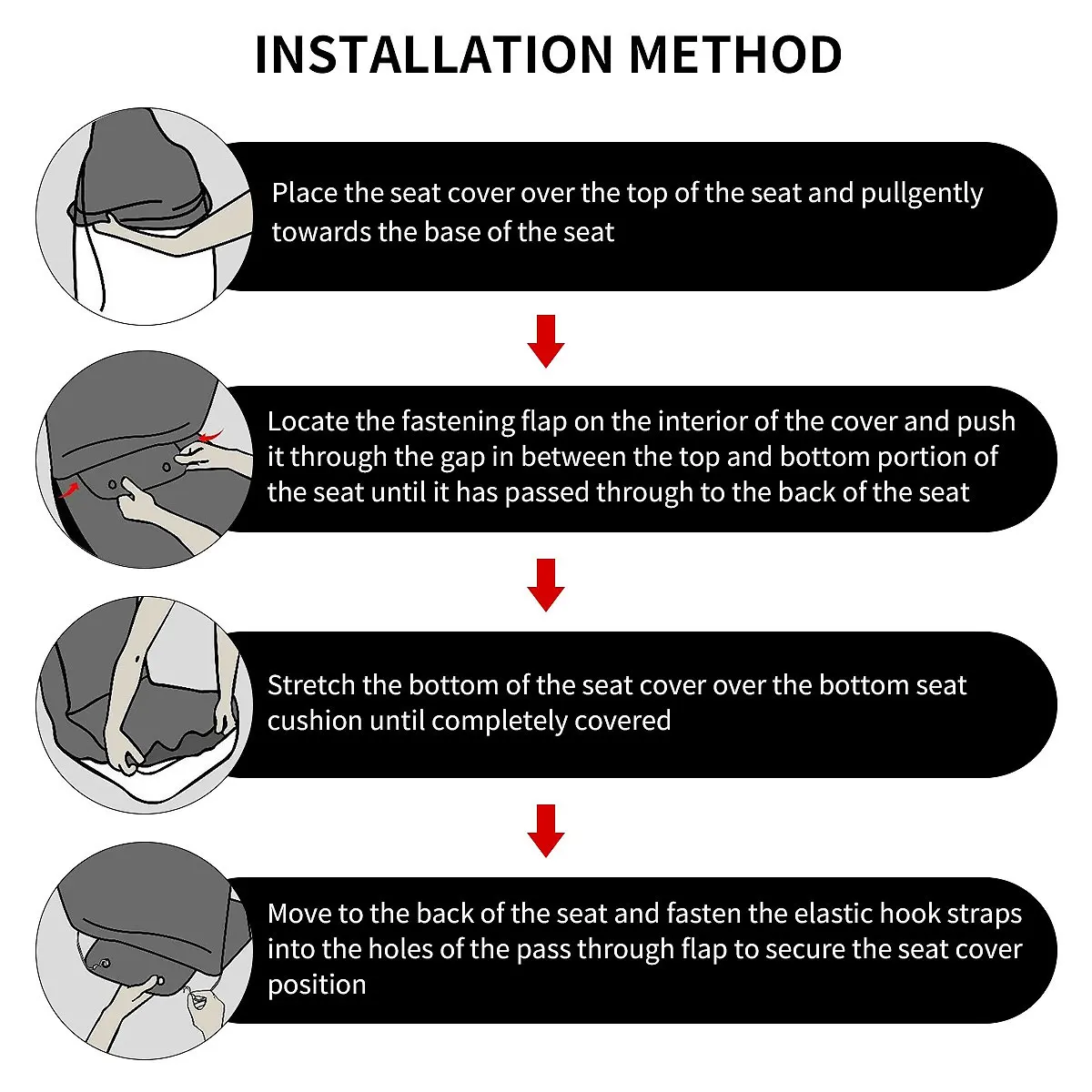 Особенности:● Использование высококачественных чехлов для сидений из дышащей ткани, удобная, износостойкая, легко моется, не отпадает.● Инновационные ткани и дизайн.● Обновите внешний вид старых или грязных сидений.● Предотвращает расщепление, пятна, выцветание, грязь и волосы домашних животных.● Простота установки и подходит для большинства сидений.