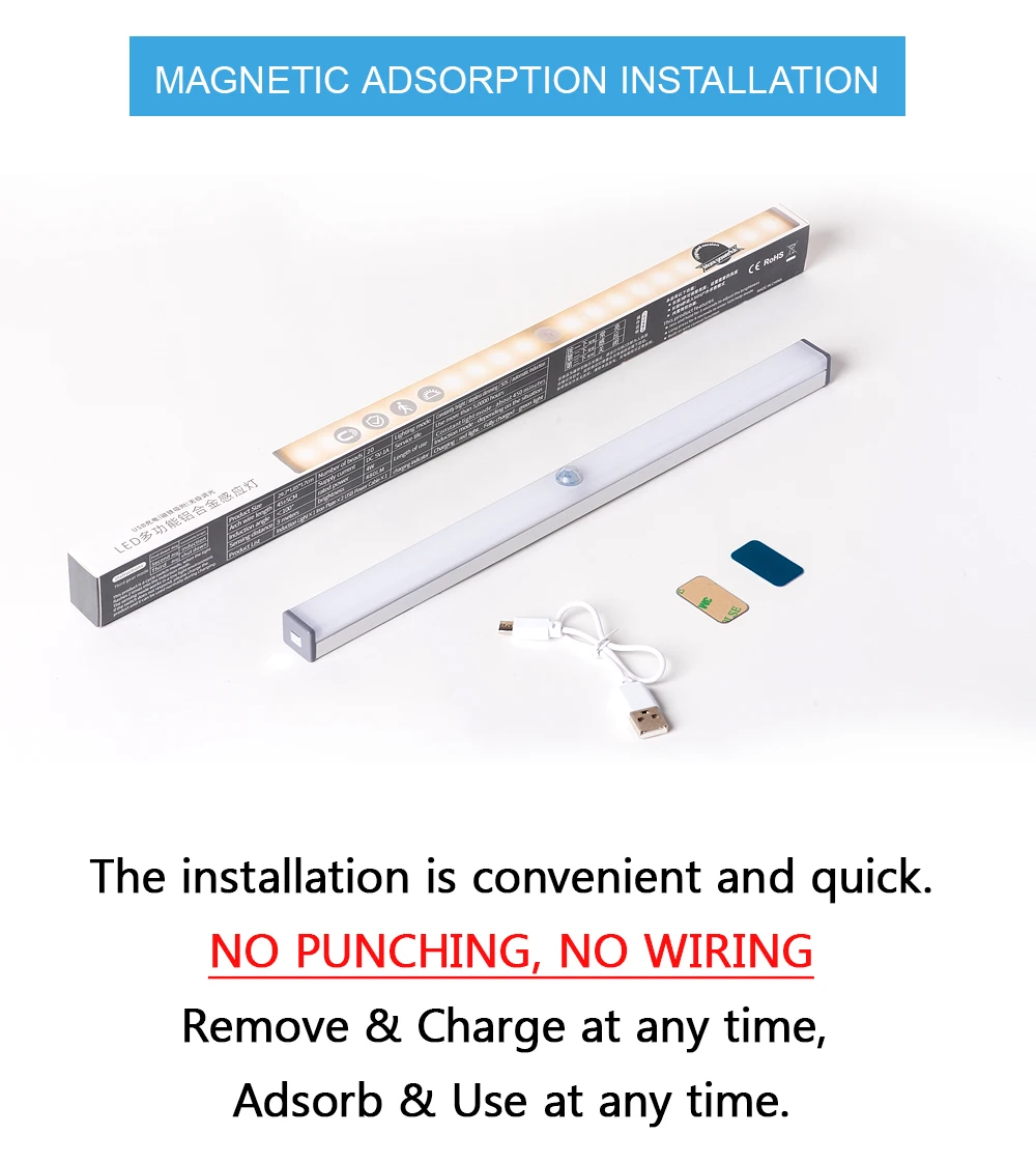 Светодиодная лента с датчиком движения, беспроводной ночсветильник, алюминиевый профиль, подсветка телевизора для шкафов, кухни, комнатное освещение, угловая лампа