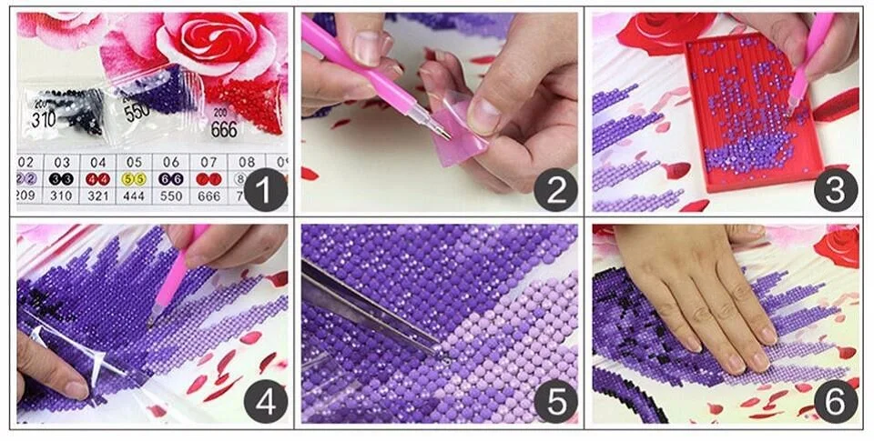 2. Вставьте круглый конец ручки в Дозирующий цемент (нажмите, чтобы сохранить цемент на месте).3. Используйте круглый конец ручки, чтобы приклеить бриллиант и слегка нажмите, чтобы удалить любой дополнительный цемент.4. Разорвите частичную пленку и поместите алмаз на холст в соответствии с соответствующим номером.5. После завершения слегка прижмите алмазы рукой или книгой, чтобы убедиться, что алмазы надежно закреплены.
