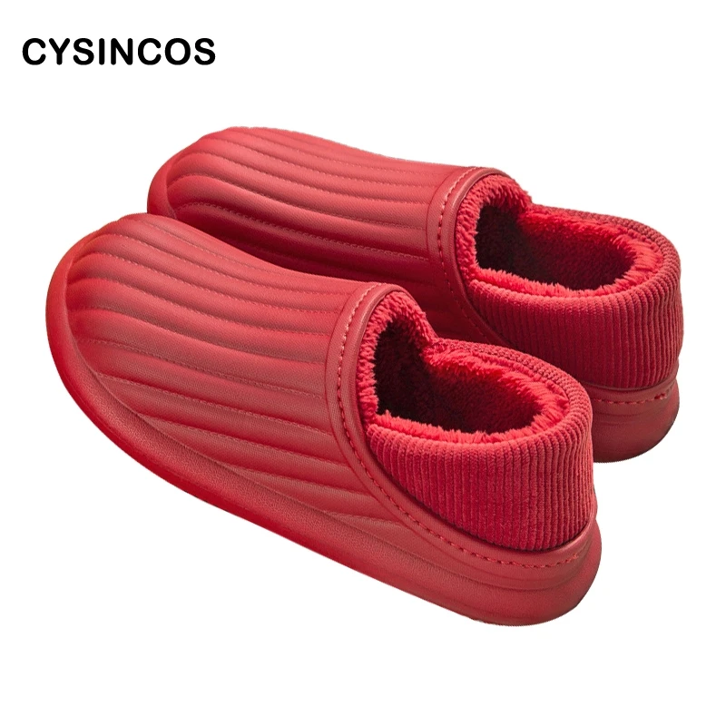 CYSINCOS новые зимние женские тапочки плюшевые водонепроницаемые теплые меховые тапочки мужские сабо домашние однотонные тапочки для влюбленных домашняя обувь для пола