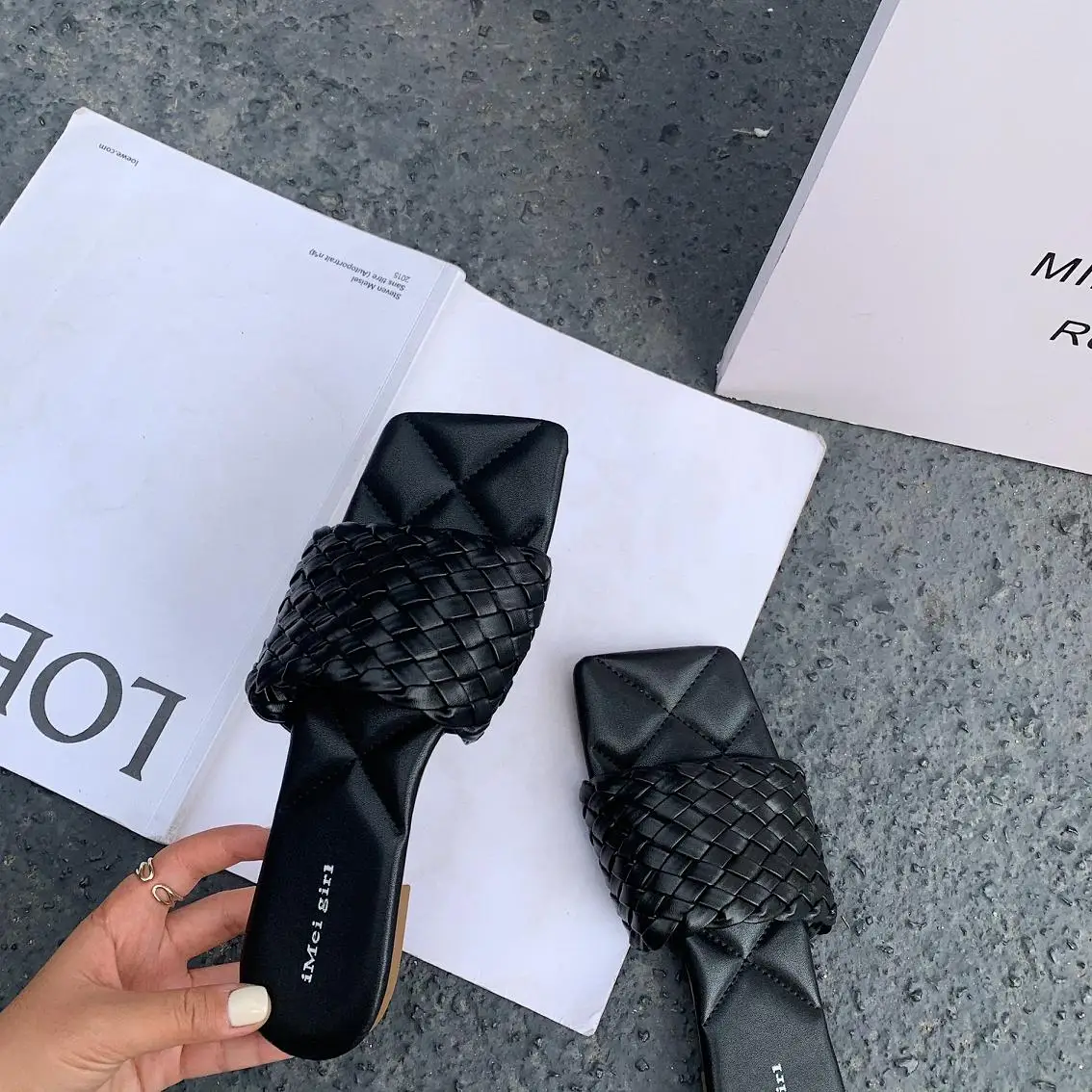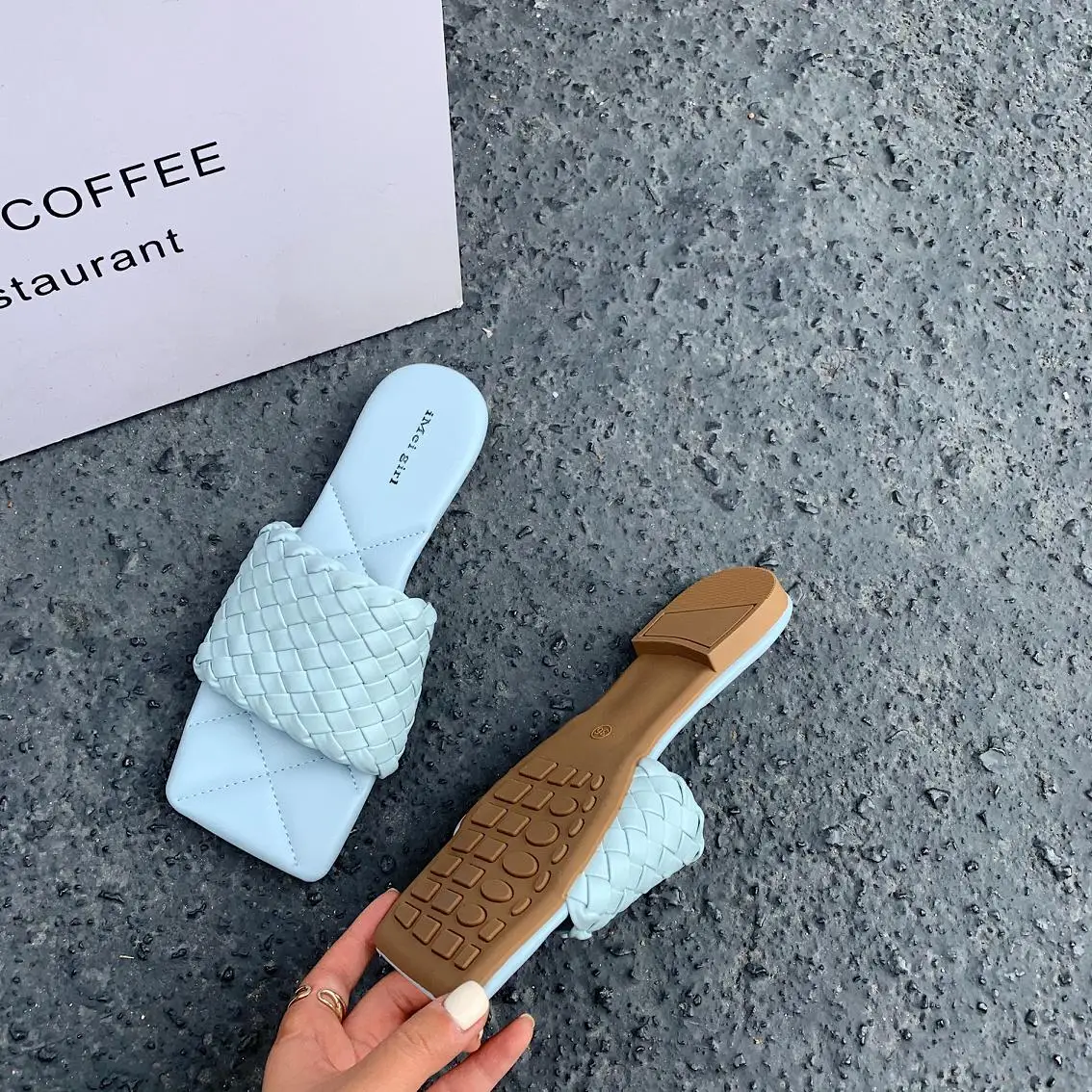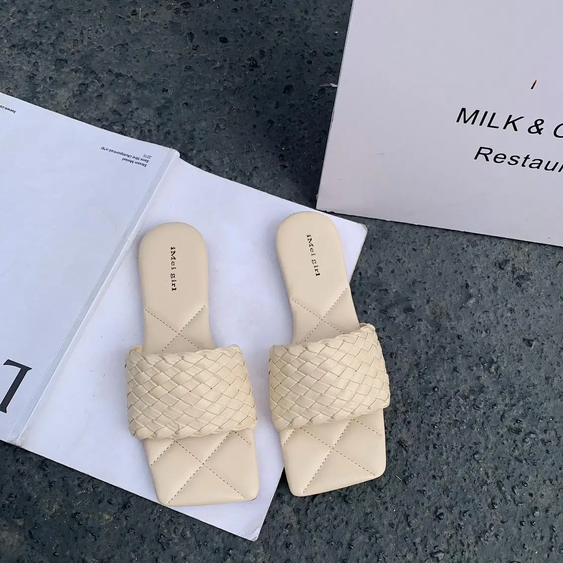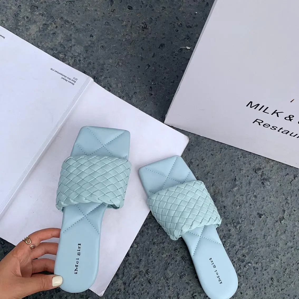 Женские босоножки на плоской подошве, с квадратным носком, лето 2021