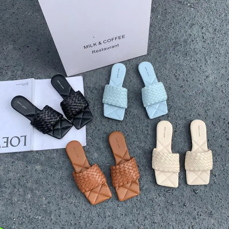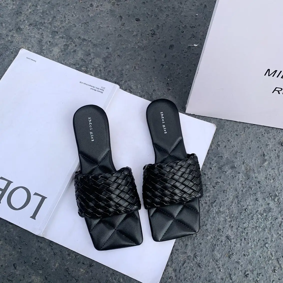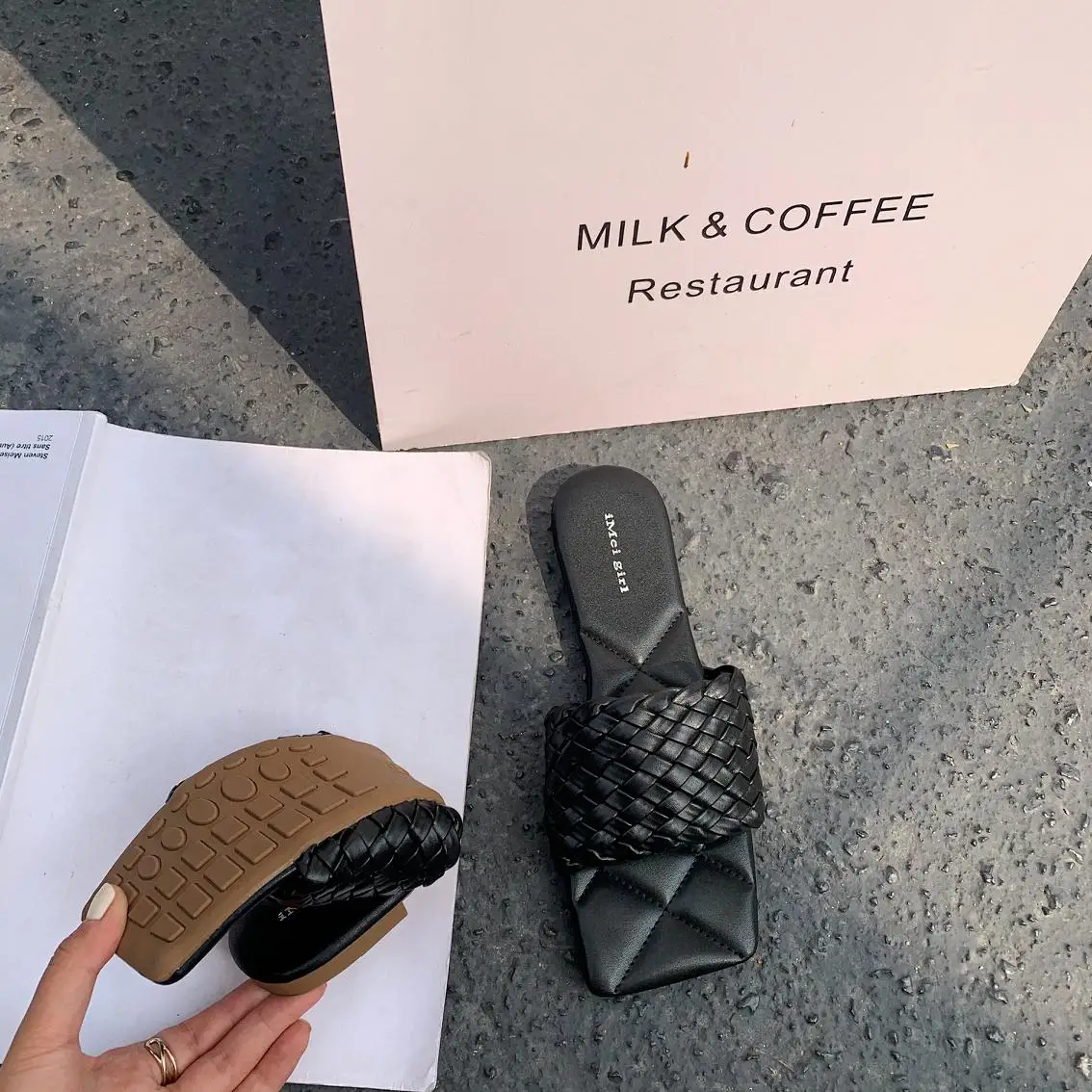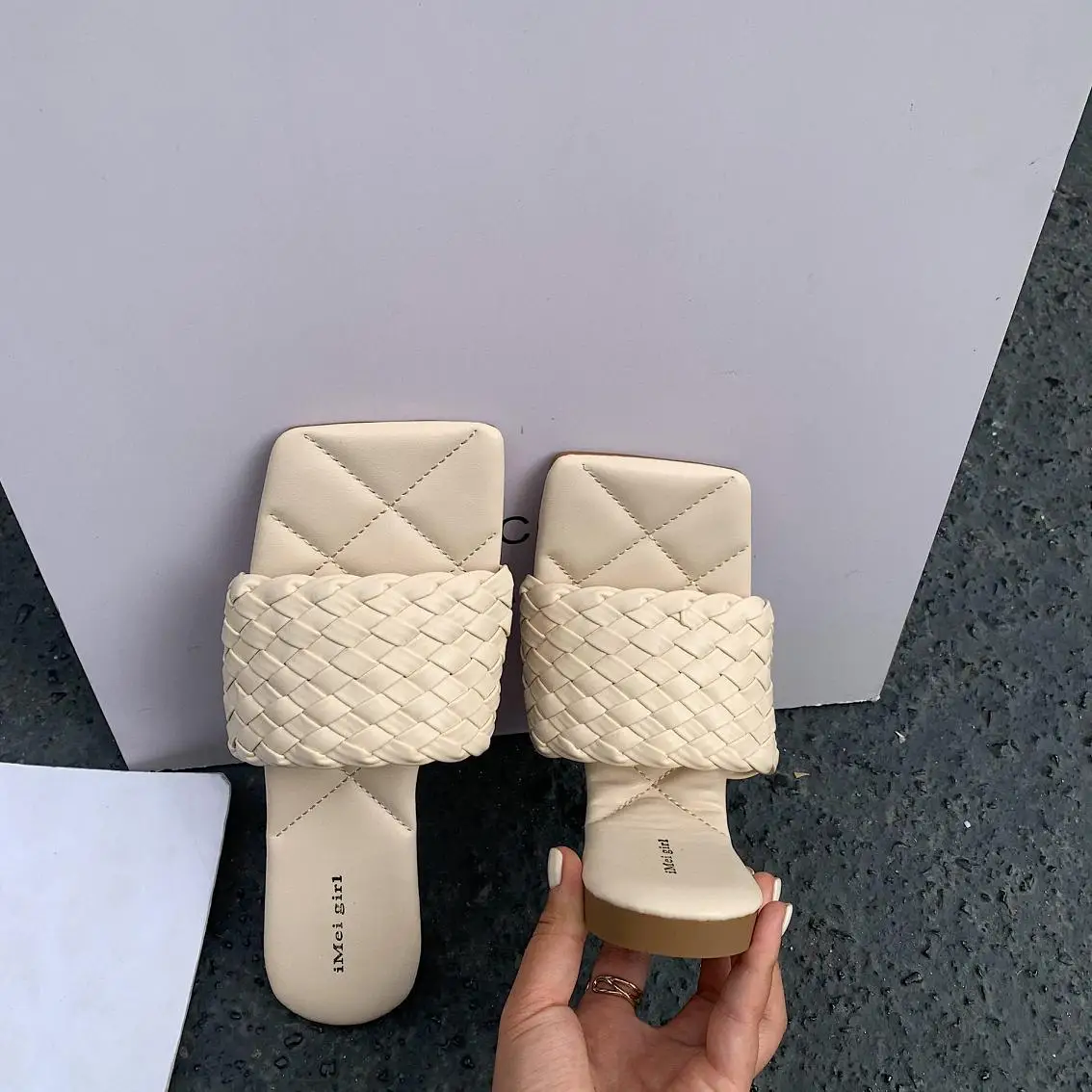 Женские босоножки на плоской подошве, с квадратным носком, лето 2021