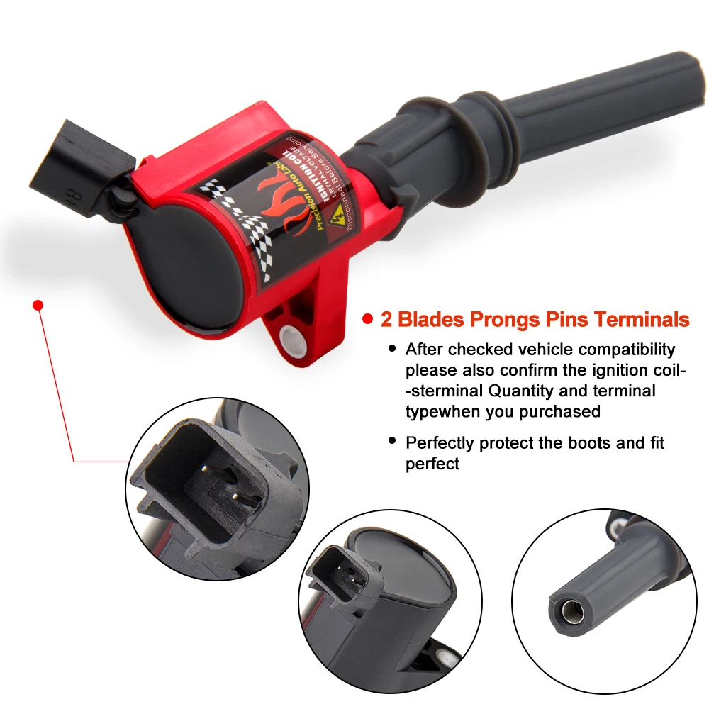 Подходит только для 3-клапанных двигателей с свечами зажигания с резьбой 16 мм. Заменяет катушки на короткие черные ботинки 4,00 дюйма и помечены 3L3E только поверх катушки.