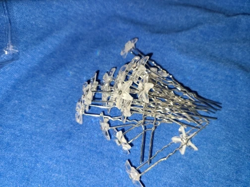шпильки сделаны из такого материала, что чувствуешь дискомфорт, когда ими пользуешься, длина не большая, но средний волос держат, хотя когда танцуешь, они не очень держат. нужно очень часто закалывать, чтобы хорошо держали. второй раз не купила бы