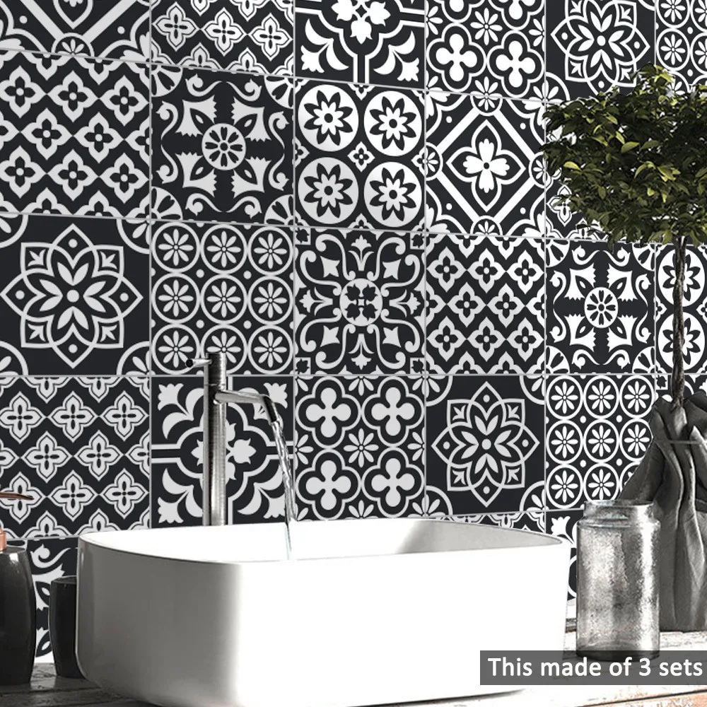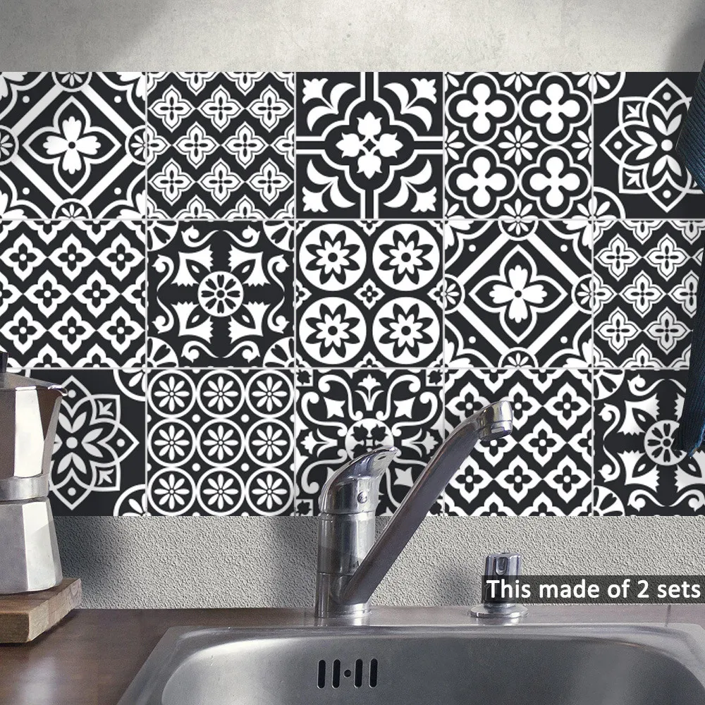Черно-белые узоры, наклейки на плитку для кухни, ванной, ПВХ, самок...