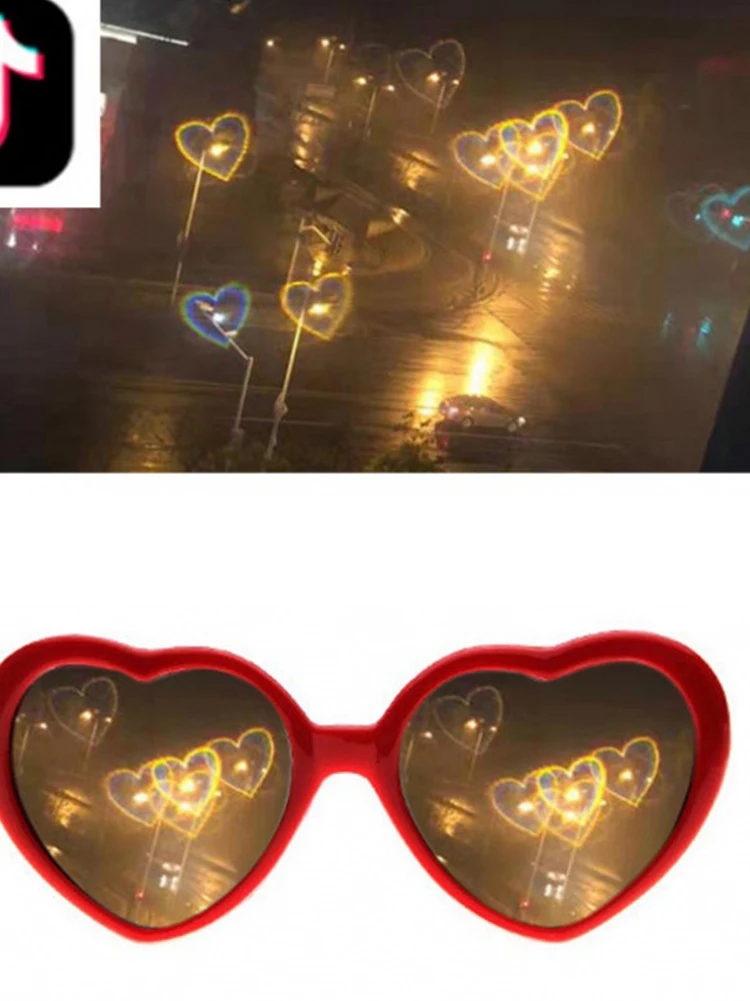 очки прикольные. издалека очень хорошо видны сердечки. они большеваты, шатаются на голове, слегка мутноваты, ну это понятно почему из-за пленки, которая создаёт сердечки, берите товар!! хороший!! канеки оценил бы