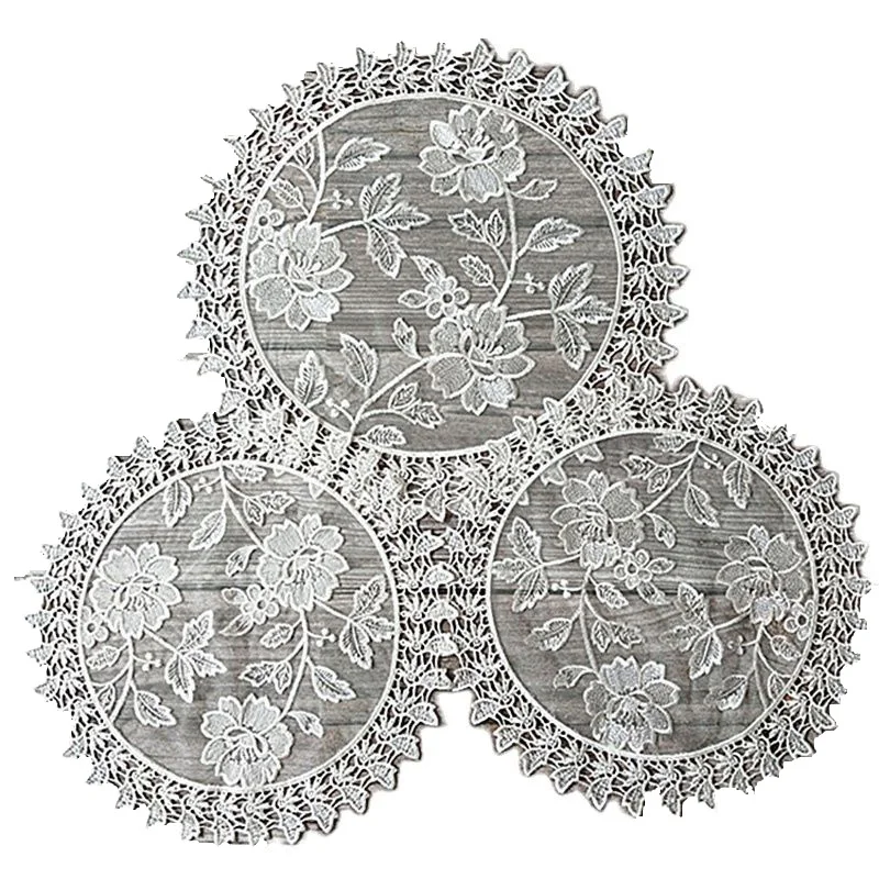 Европейский круглый кружевной коврик для стола с вышивкой, тканевый...