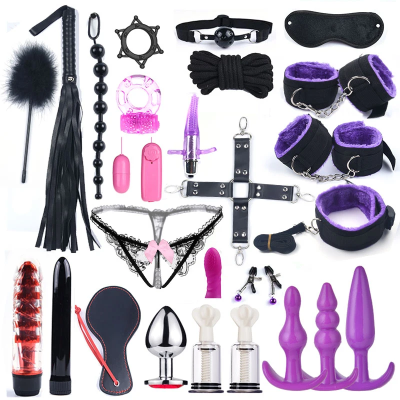 18 + SM взрослые игры, фаллоимитатор для точки G, вибратор, Анальная пробка, набор для связывания, кнут, наручники для секса, БДСМ, экзотические товары для секса
