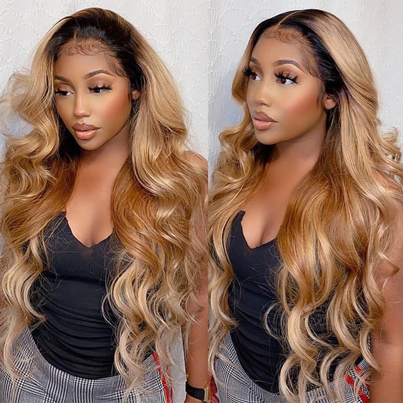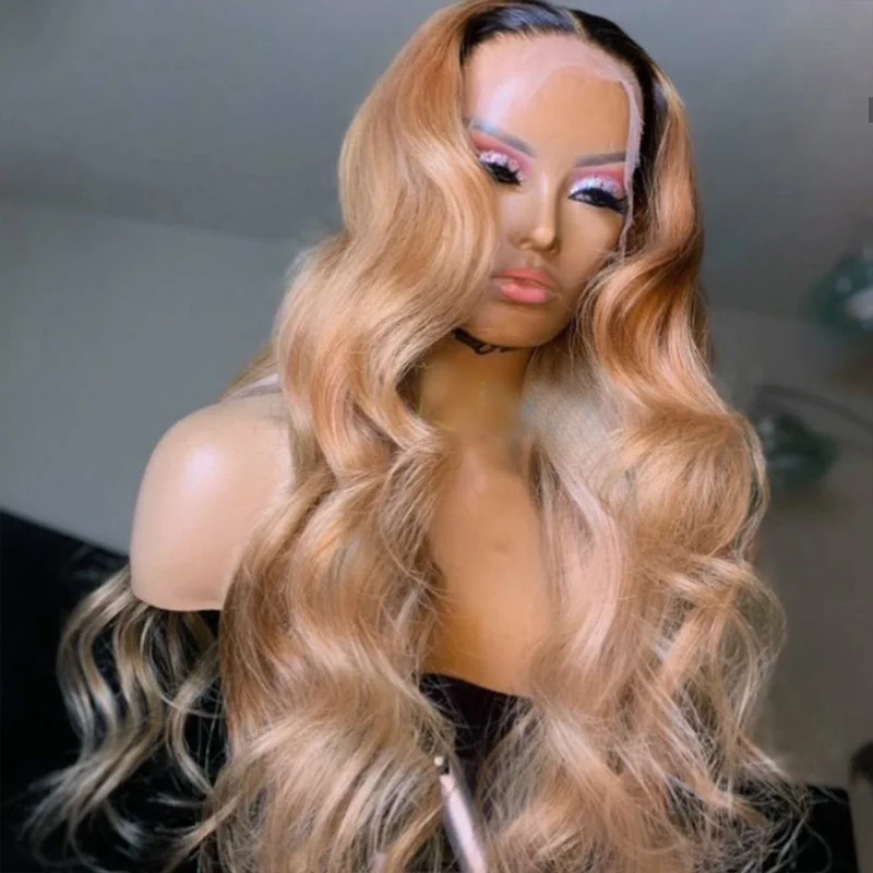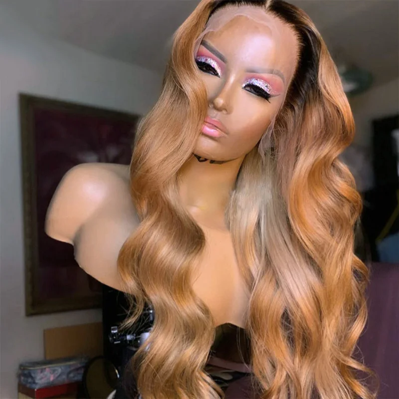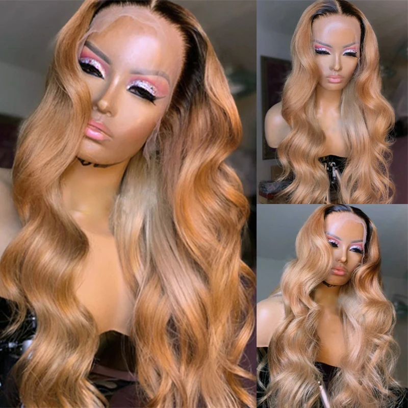 Медовая Блондинка кружевной передний парик Омбре 1B27 кружевной передний парик из человеческих волос бразильский парик с неповрежденной кутикулой для женщин предварительно Оторванный T-образный парик на сетке