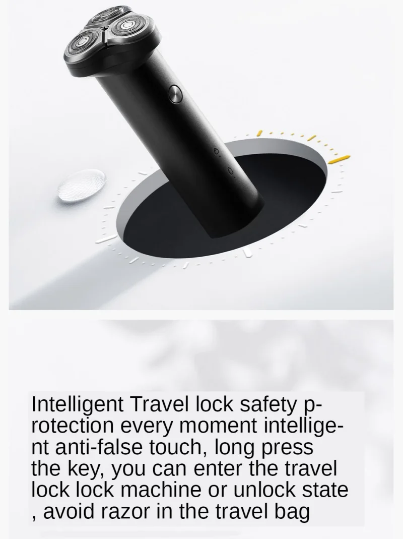 -IPX7 Водонепроницаемость всего тела, моющийся стиль, легко моется. -Технология 3D плавающего бритья, подходит для всех контуров лица, доступны сухое или влажное бритье бороды, очень удобно. -Поставляется с двойным кольцом и сеткой лезвия, что обеспечивает быстрое бритье. -ECM-электро химическая технология обработки, лезвие бритвы более остро, и отборная импортная высококачественная сталь, не легко ржавеет, прочный для длительного срока службы. -Быстрая зарядка, только нужно заряжать в течение 2 часов, а затем используется для 60 минут, 3,9 м/сек скорость резки, особенно подходит для глубокой очистки. -Съемная режущая головка, легко разбирается и чистится, отдельный корпус, режущая головка может быть легко разобрана, гибкая и удобная. -10 минут защиты от отключения питания, энергосбережения, и он автоматически отключит питание, чтобы предотвратить скрытые безопасные опасности, вызванные случайным запуском. -Умный дорожный замок, защита каждый момент. Интеллектуальный анти-mistouch, долго нажимайте клавишу, вы можете войти в блокировку путешествия или разблокировать состояние, чтобы предотвратить случайное прикосновение и запуск бритвы в сумке для путешествий, что создает потенциальную опасность для безопасности.