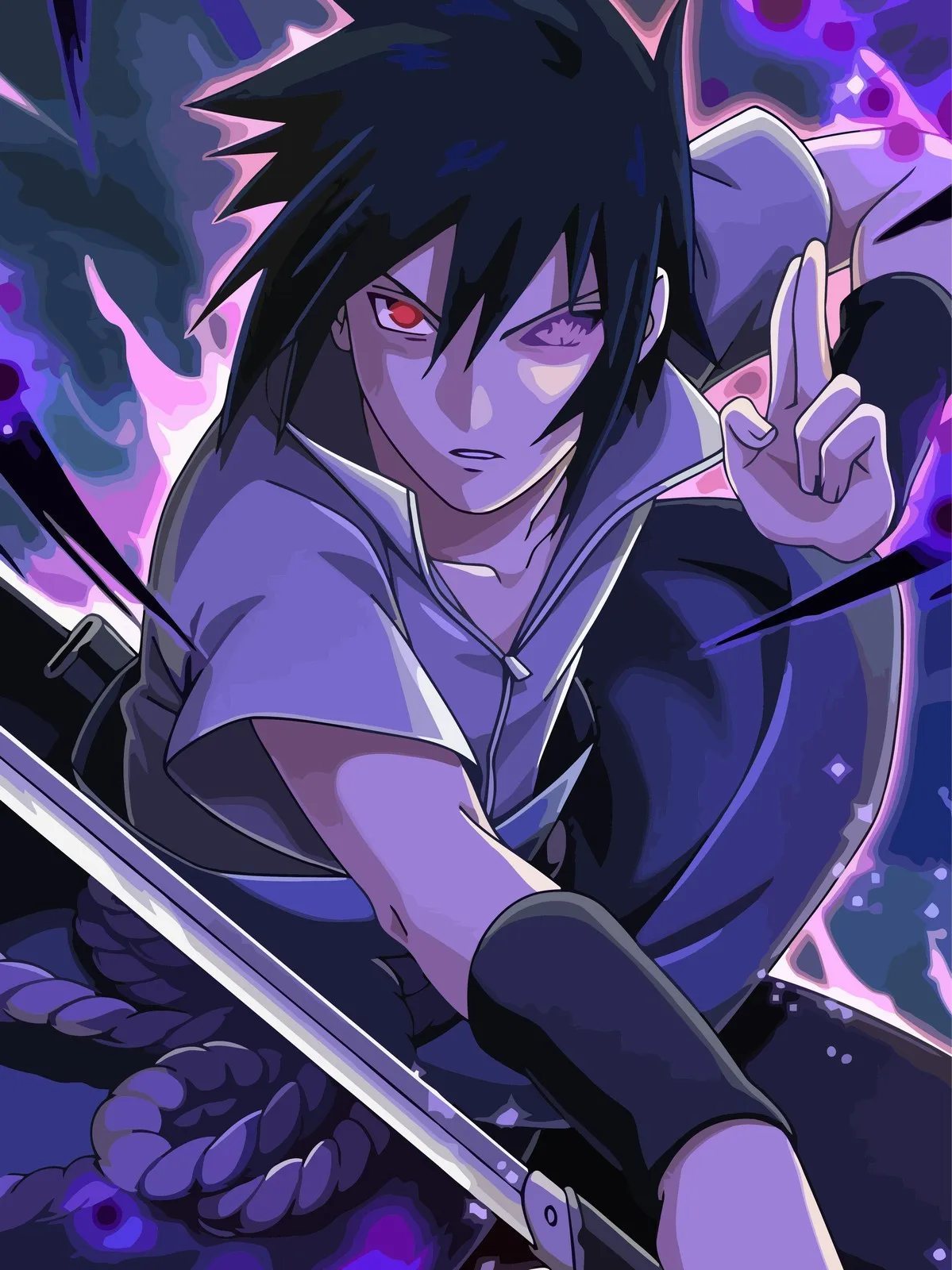 Картина по номерам на холсте рисование аниме наруто Саске Учиха - 1...