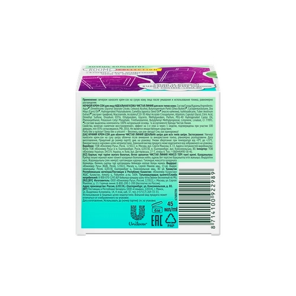 Чистая Линия ИДЕАЛЬНАЯ КОЖА ночной крем-сон для лица ДЛЯ ВСЕХ ТИПОВ КОЖИ 45 мл