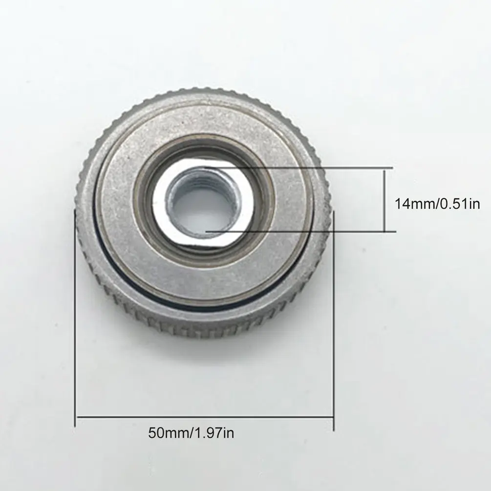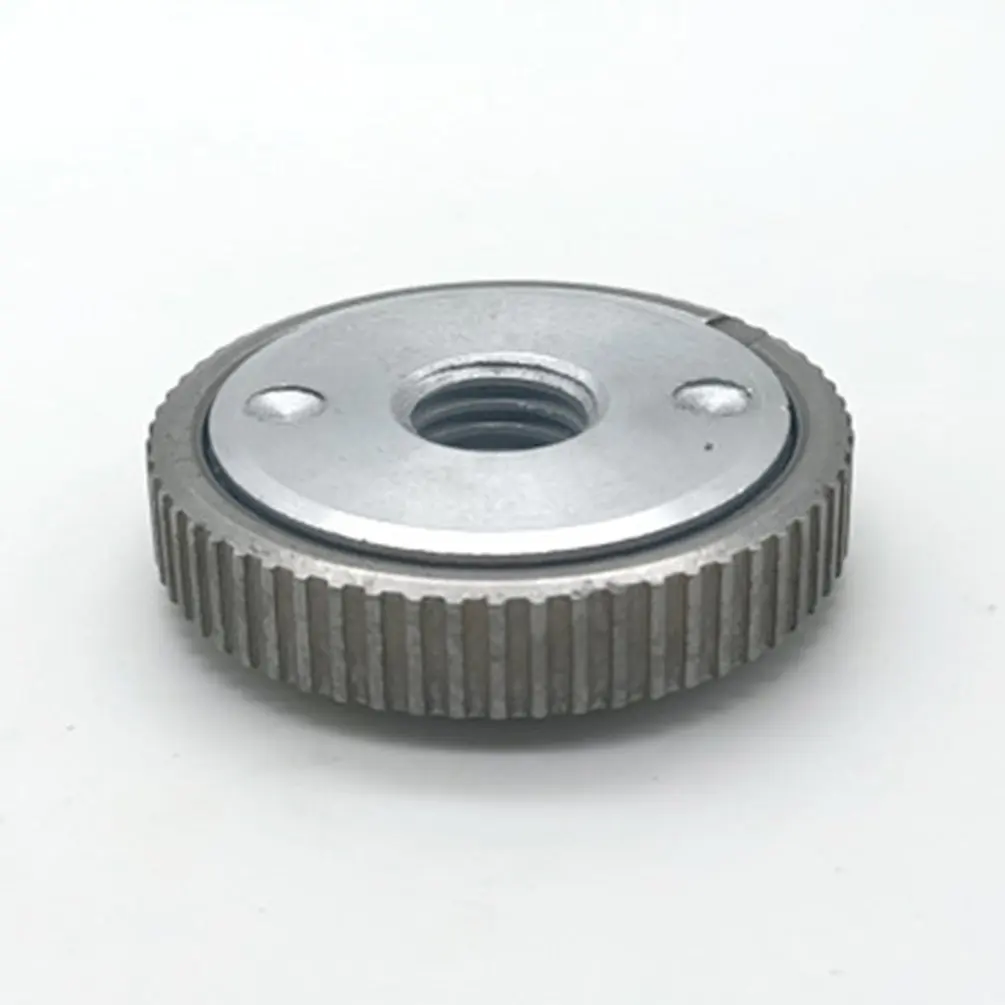 Зажимная гайка подходит для всех угловых шлифовальных машин интерфейса M14 на рынке, она используется для угловых шлифовальных машин и режущих машин с скоростью 1200 Вт 11000r/мин и диаметром шлифовального диска 125. Например, алмазные режущие диски, шлифовальные диски, шлифовальные диски в форме чашки, алмазные пластины и другие типы шлифовальных кругов.